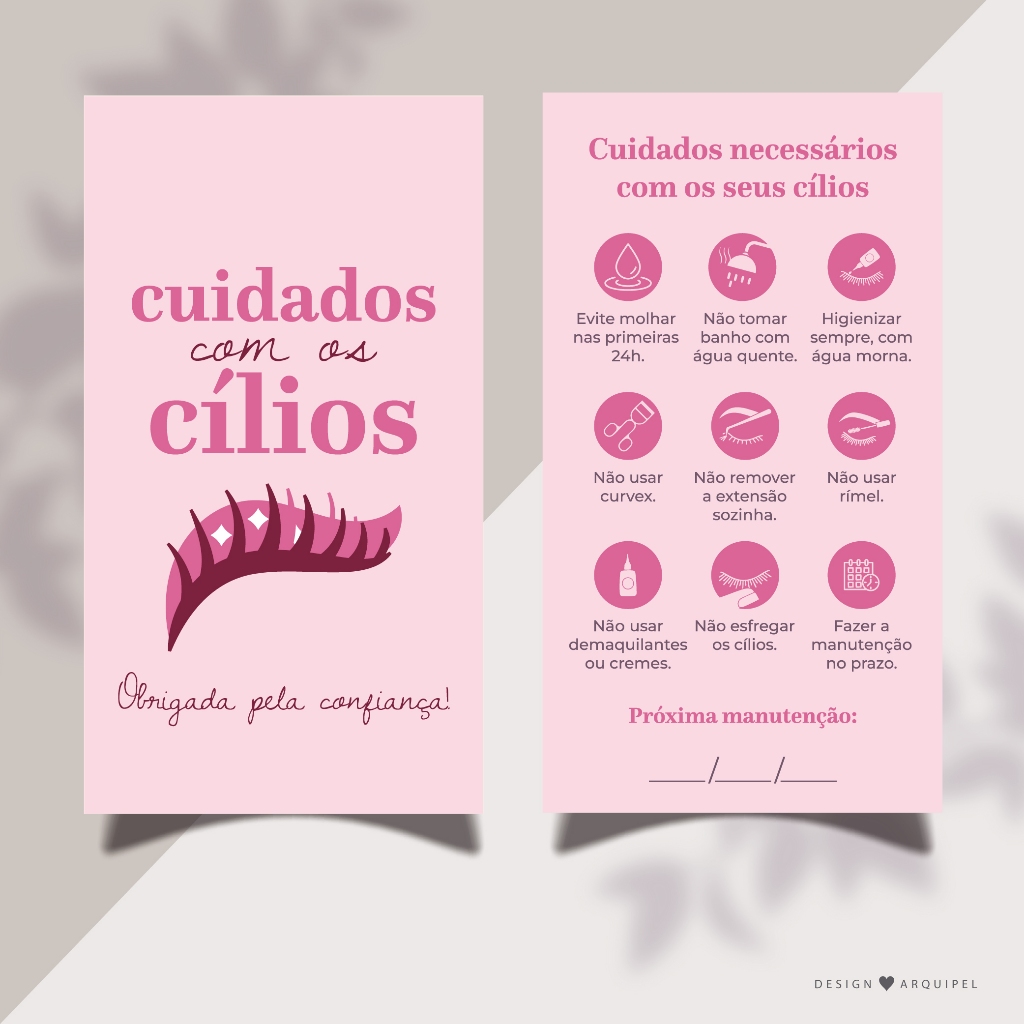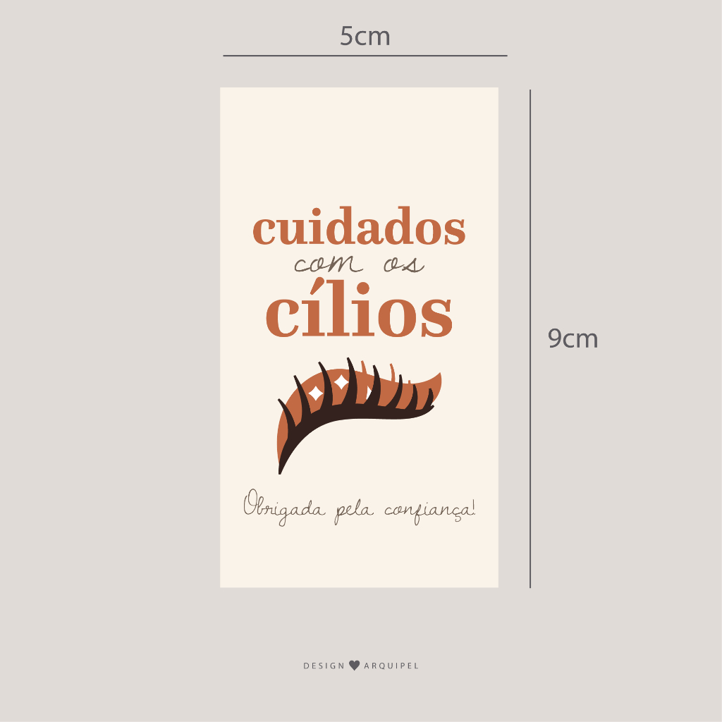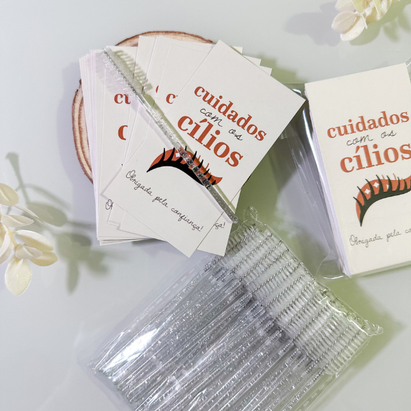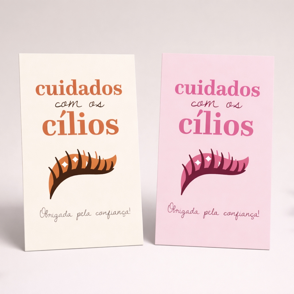 Cartão de Cuidados com Cílios alongamento, extensão de cílios 5x9cm Mimos e Brindes