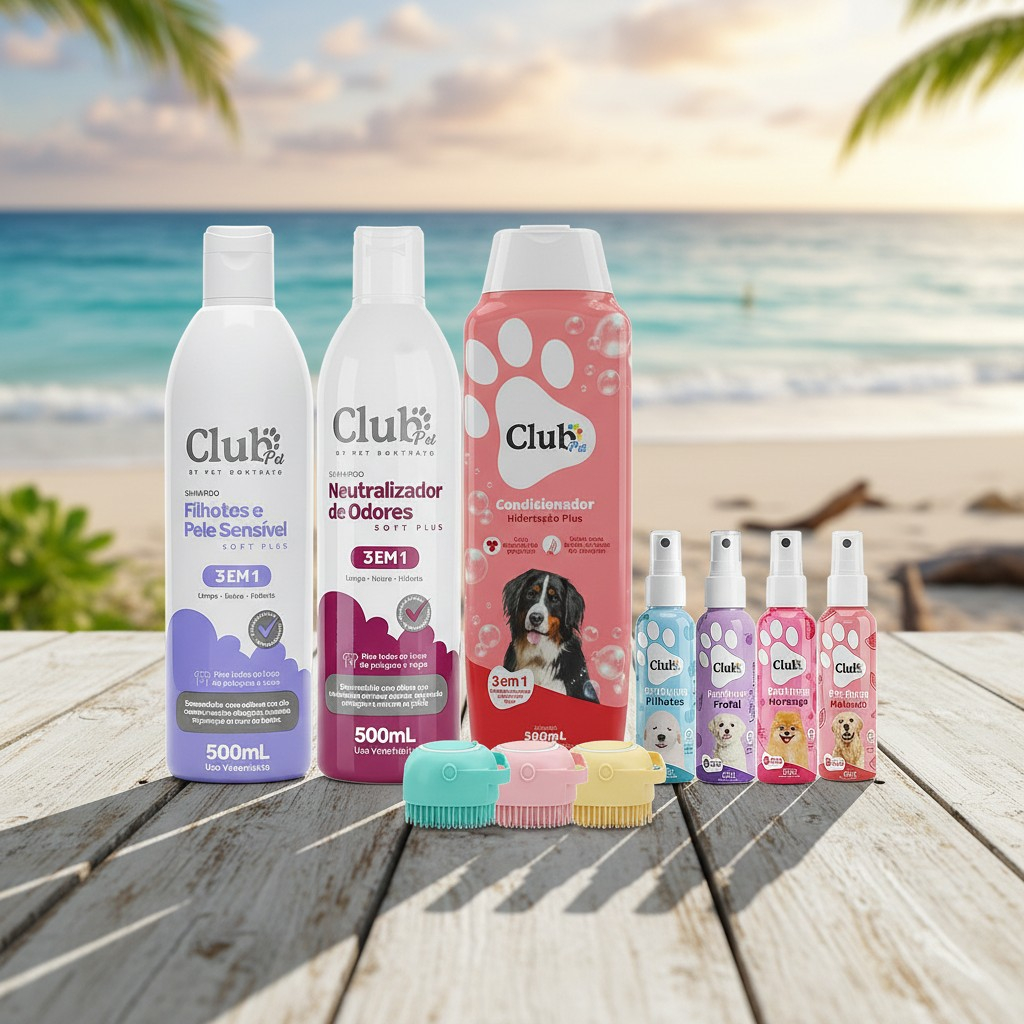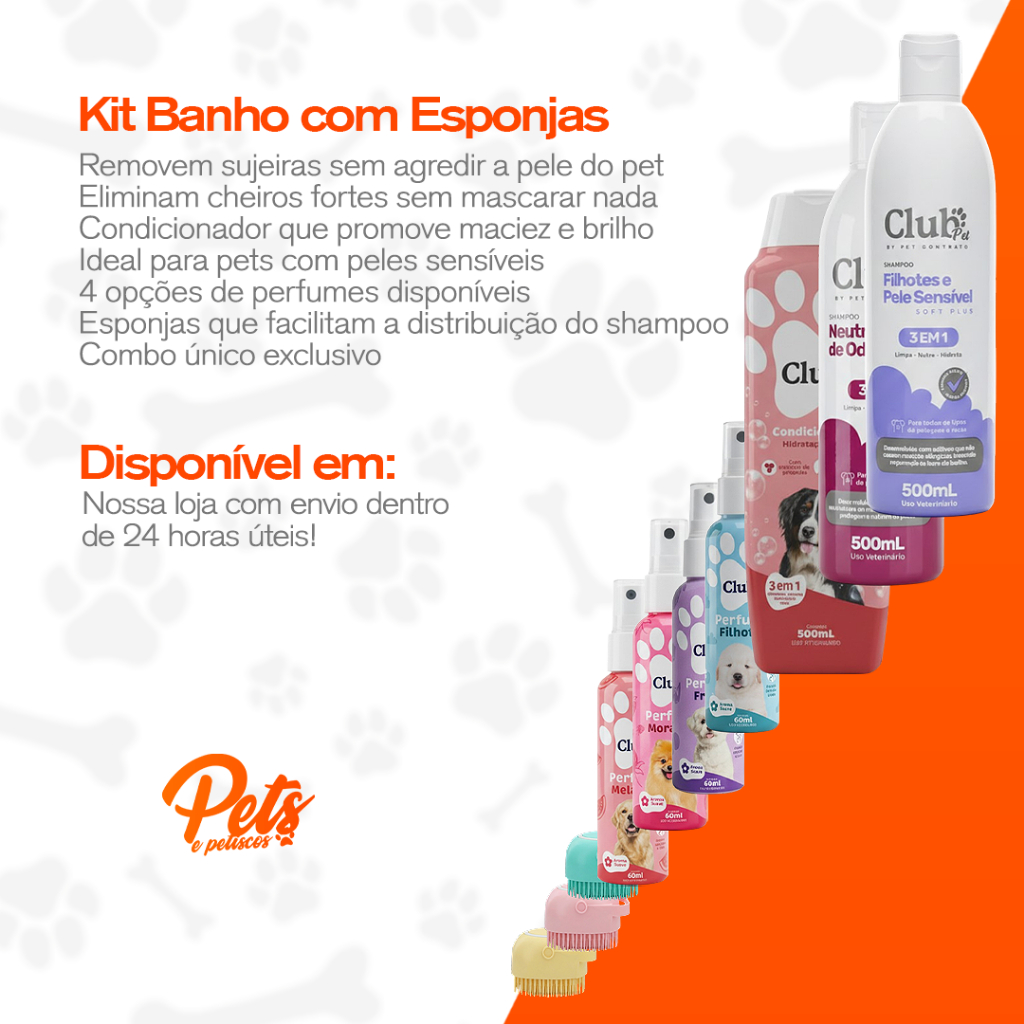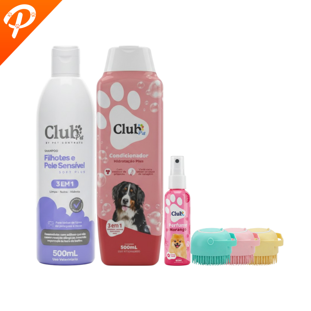 Kit Higiene Pet 3 em 1 Banho Com Escova Massageadora Dispenser Shampoos Condicionador e Perfumes
