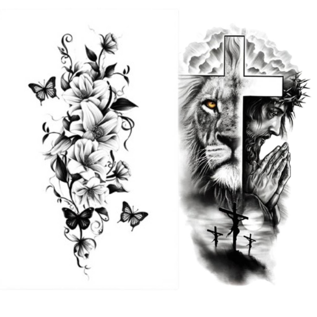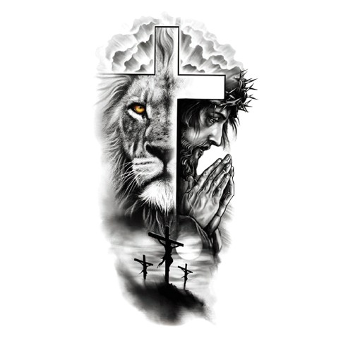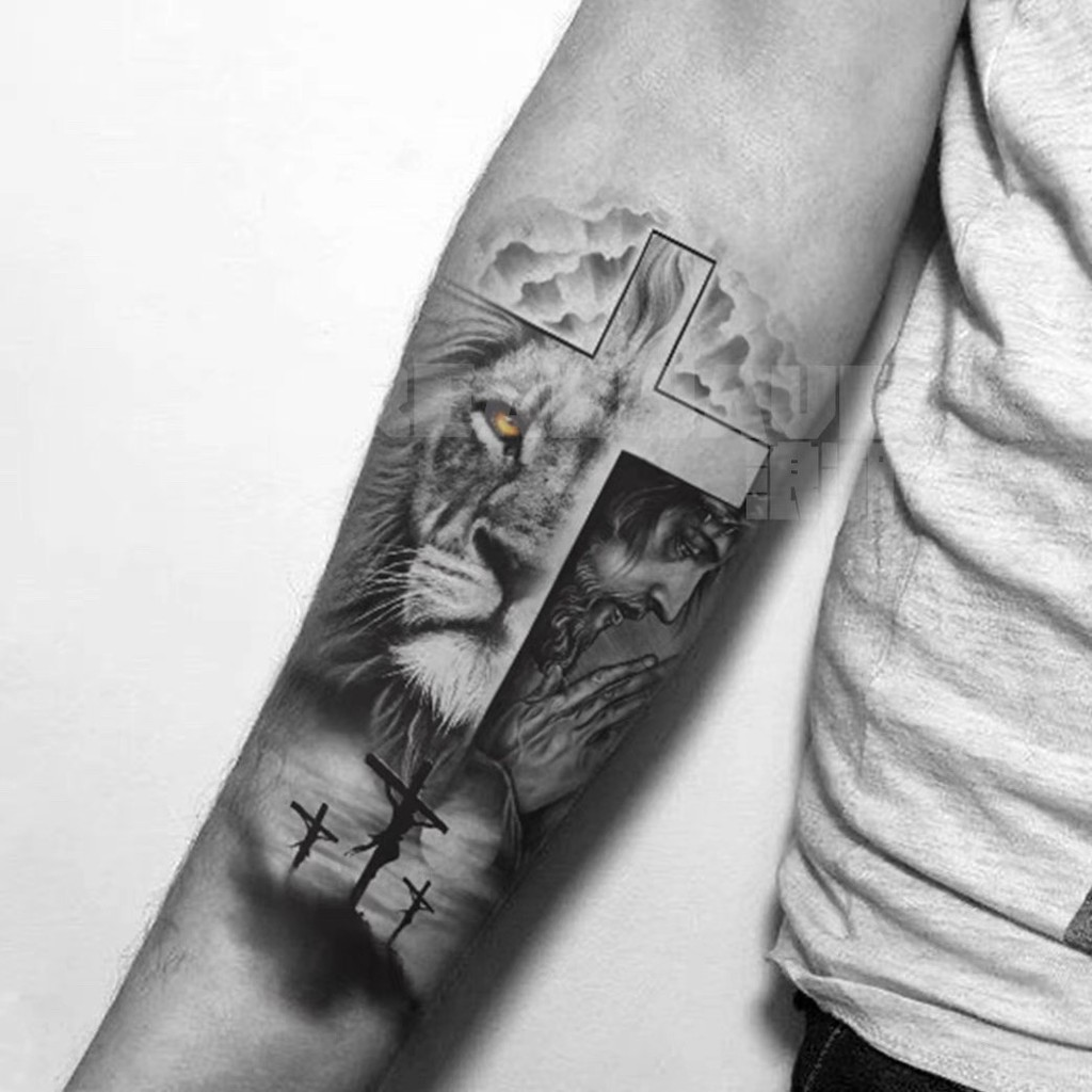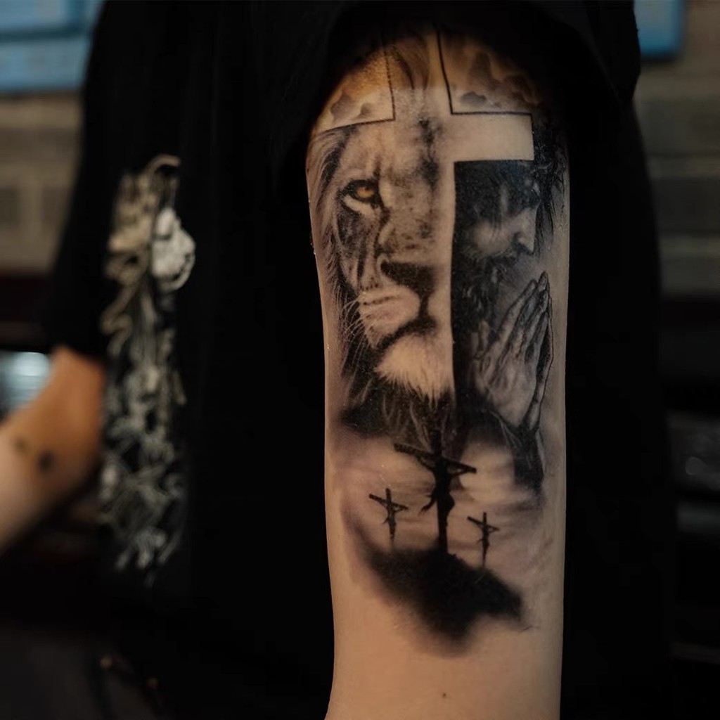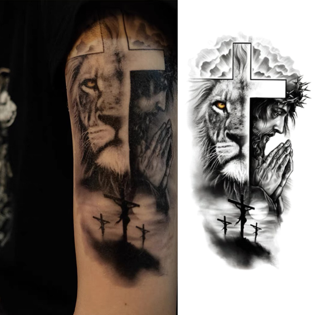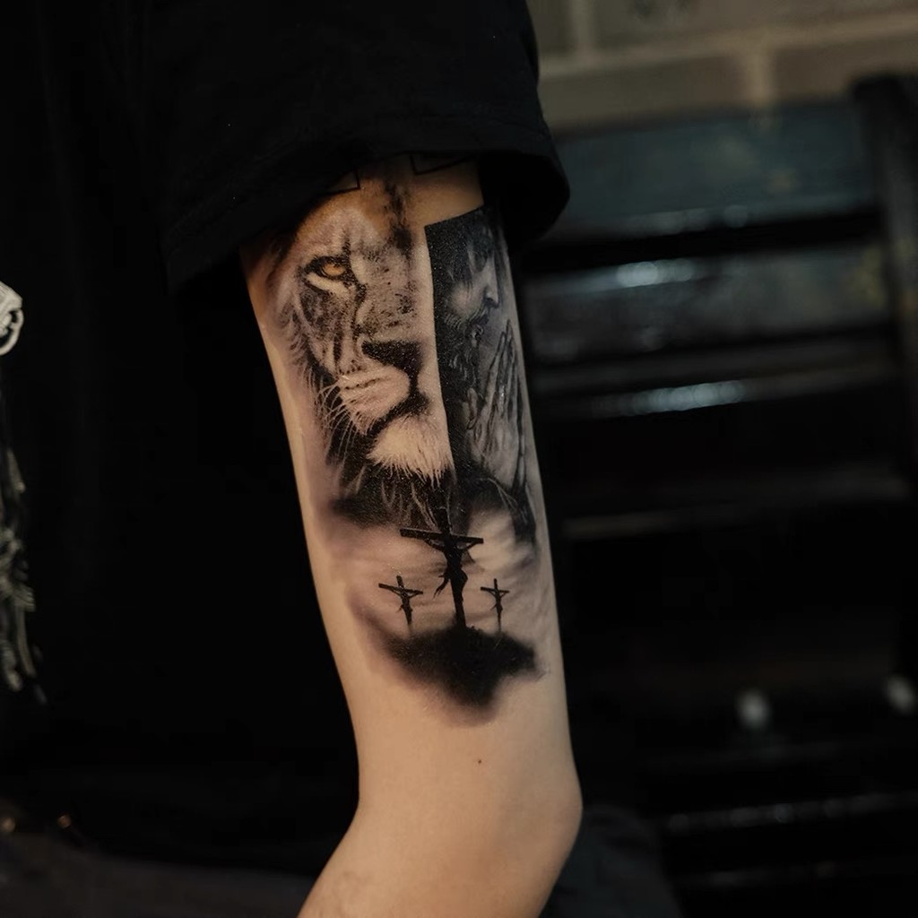 tatuagem temporária de leão realista, tatuagem masculina adulta, arte corporal falsa à prova d'água