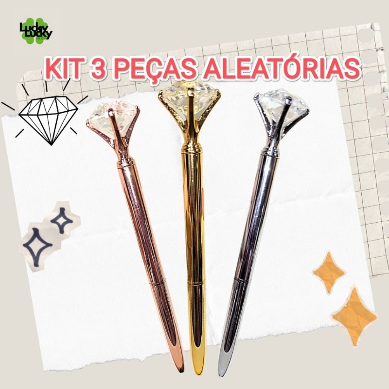 1/3 peças Caneta esferográfica Diamente cristal brilhante Luxo de Metal 1,0mm