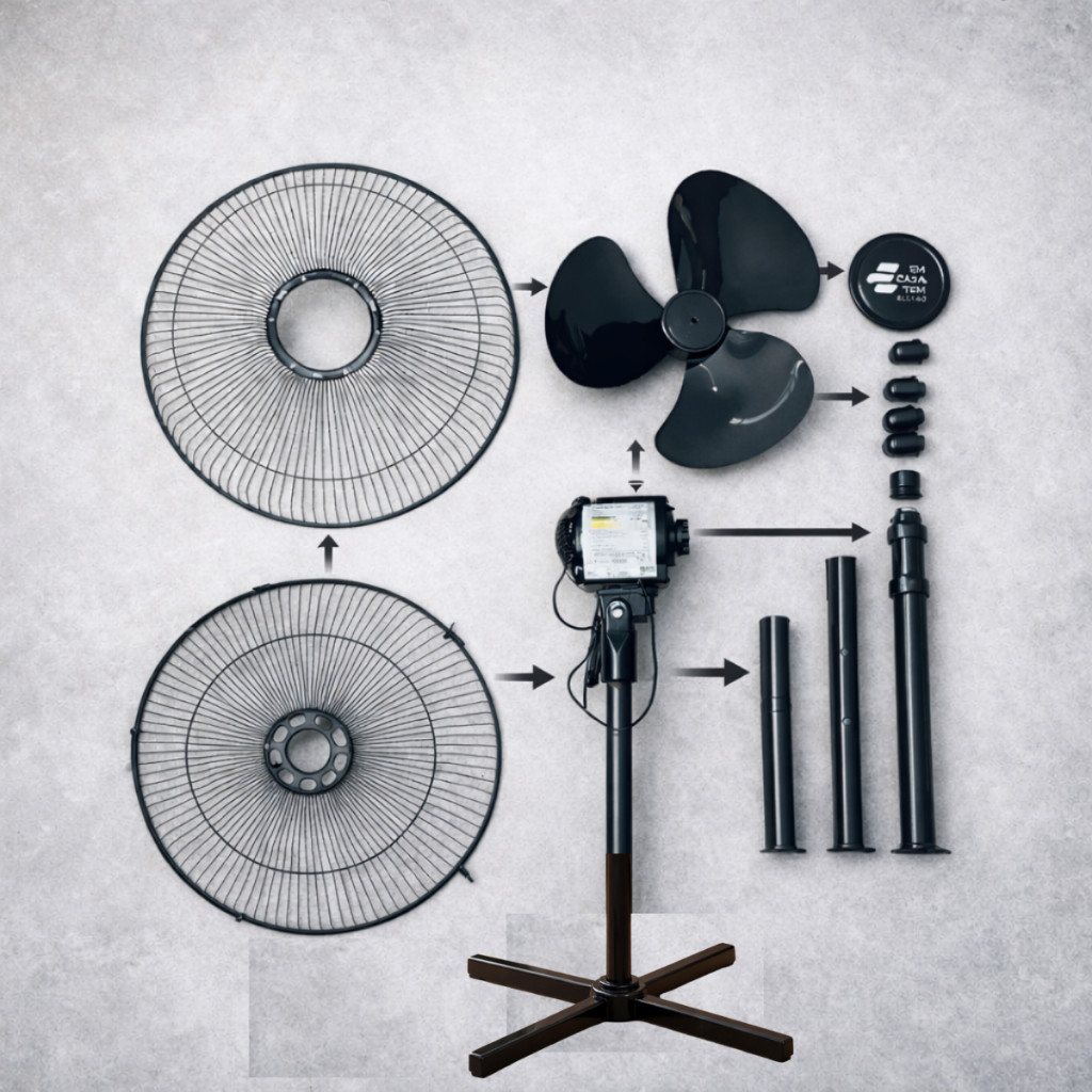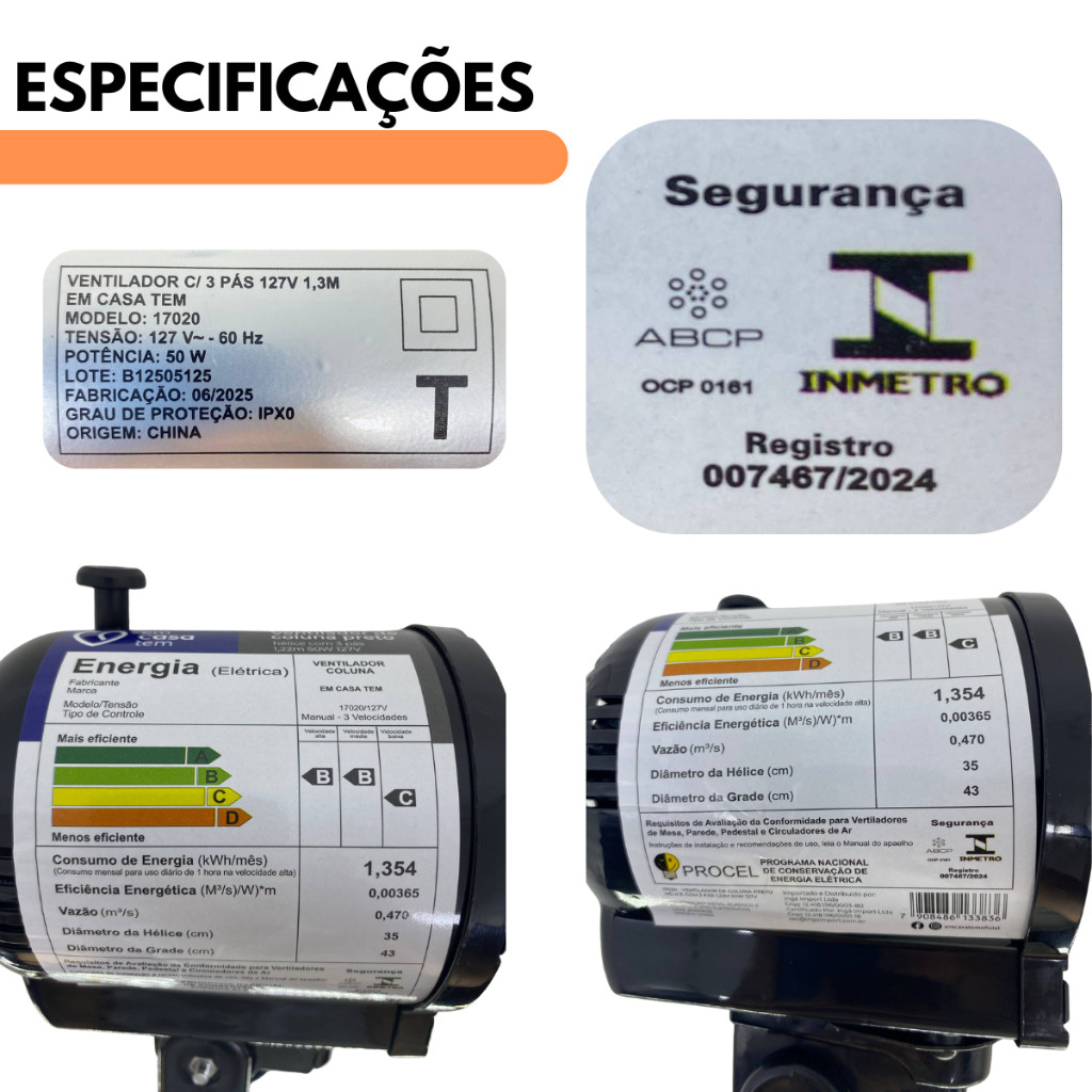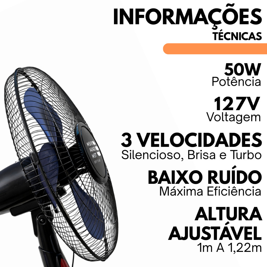 Ventilador De Coluna De Chão Turbo 127V Vento Forte 3 Velocidades