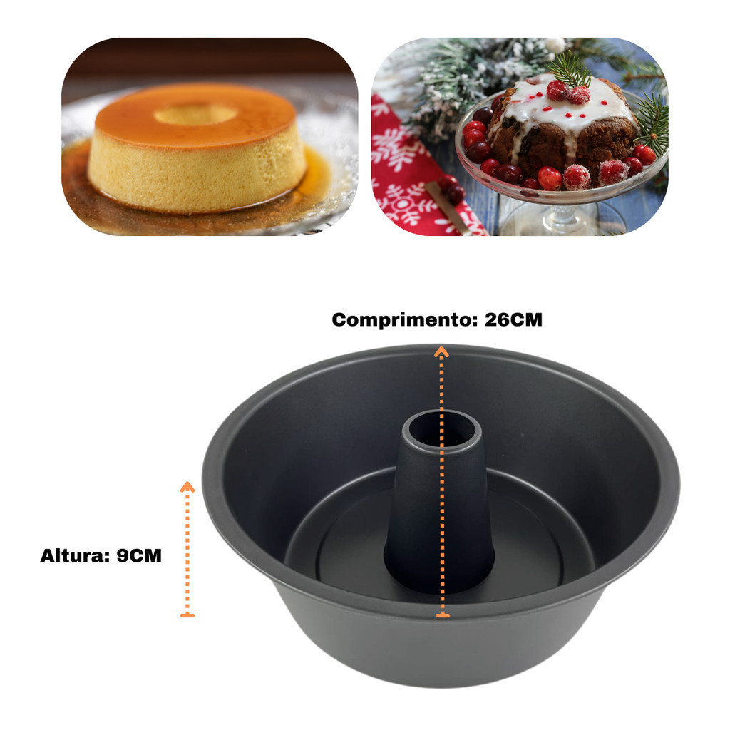 Forma Assadeira Antiaderente para Bolo Vulcão Pudim Com Furo Central Alta