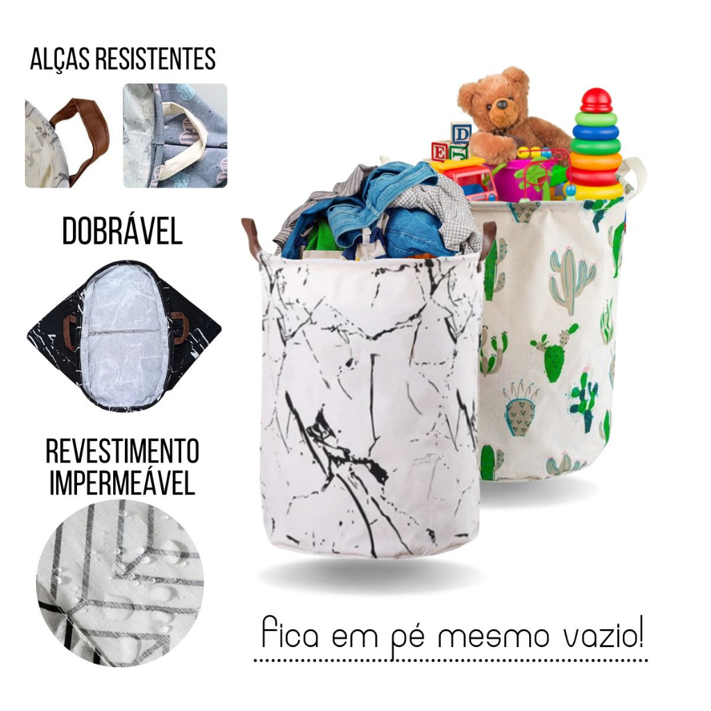 Cesto de Roupa Organizador Dobrável e Tecido Impermeável 40cmx47cm REDONDO