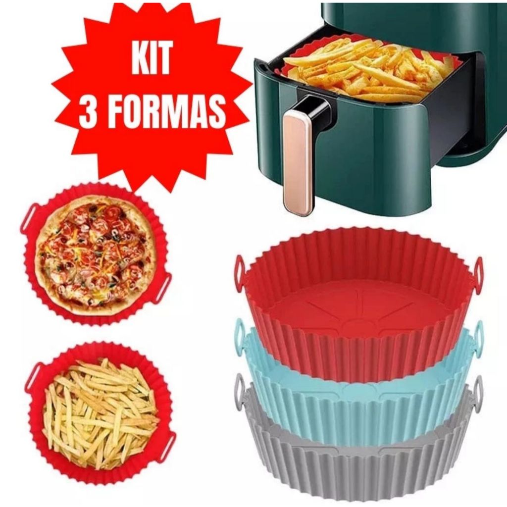 KIT 03 Formas de Silicone Grande Quadrada Antiaderente Assadeira Air Fryer e Forno para Fritadeira Elétrica com Alça