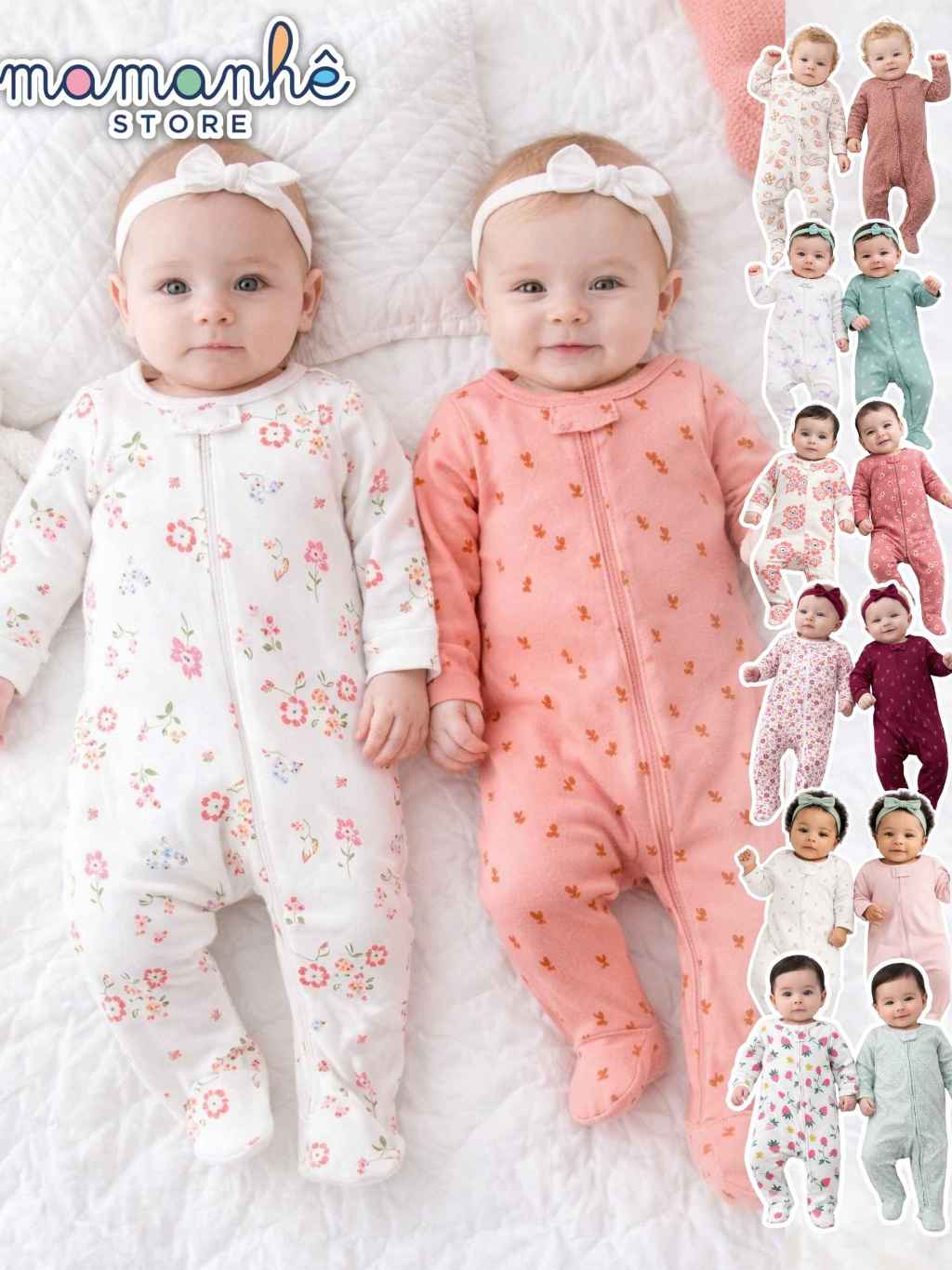 Kit Macacão Pijama Bebe Menina ORIGINAL 0 A 9 Meses