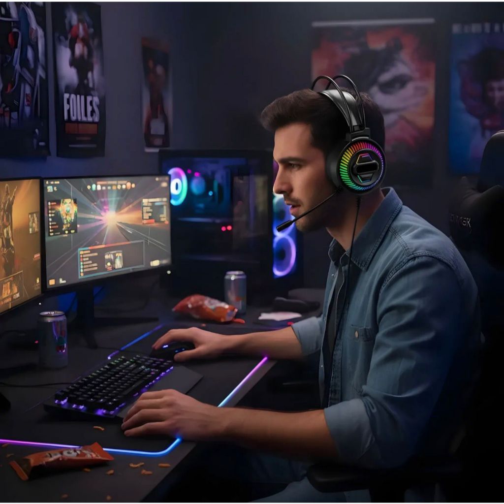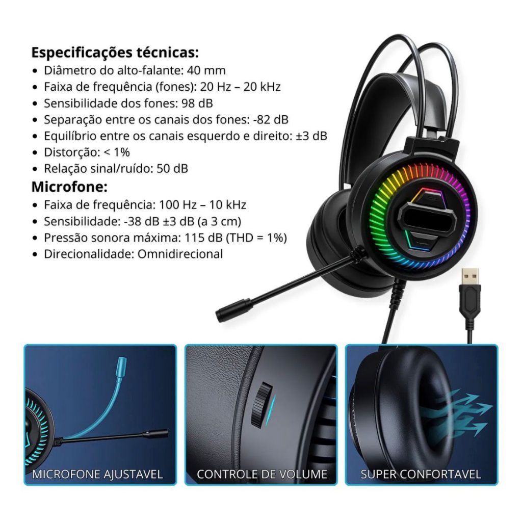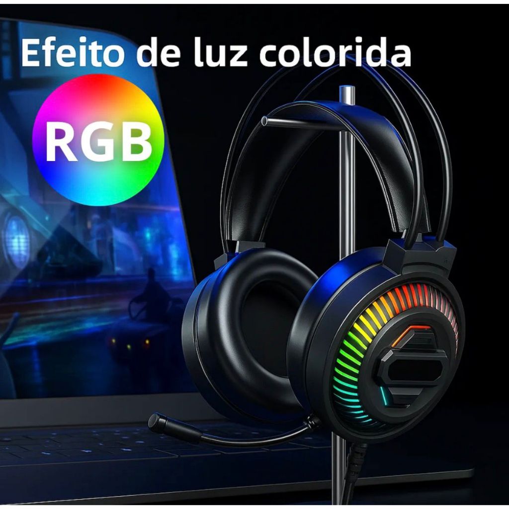 Headset Gamer Pro Rgb Fone Com Fio Microfone