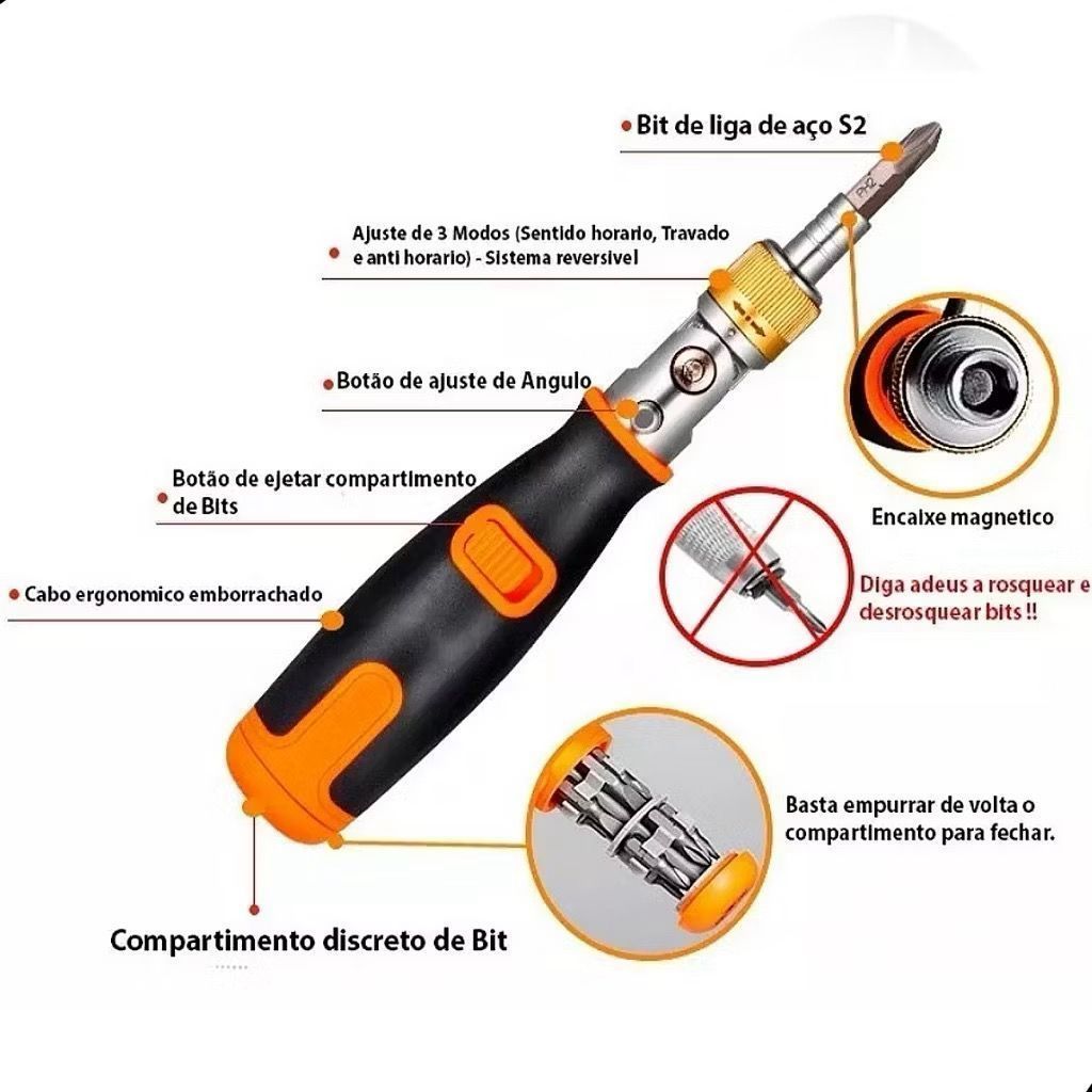 Kit Chave Catraca 1/4 12 Pçs Bits Fenda Philips Torx Soquete Multifuncional