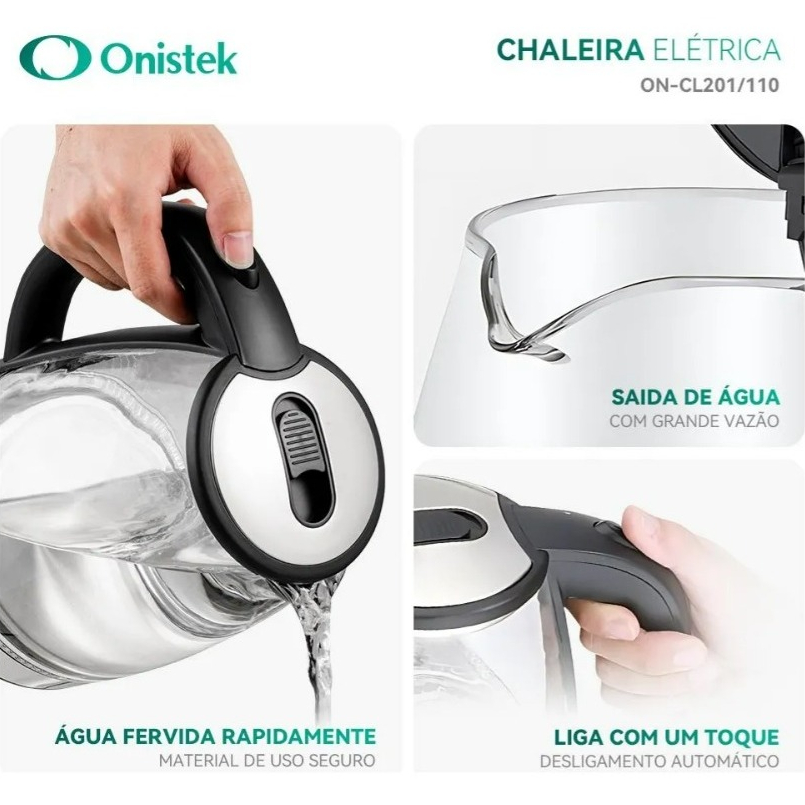 Chaleira Jarra Bule Elétrica Vidro Transparente 1.8l 1200w Prateado