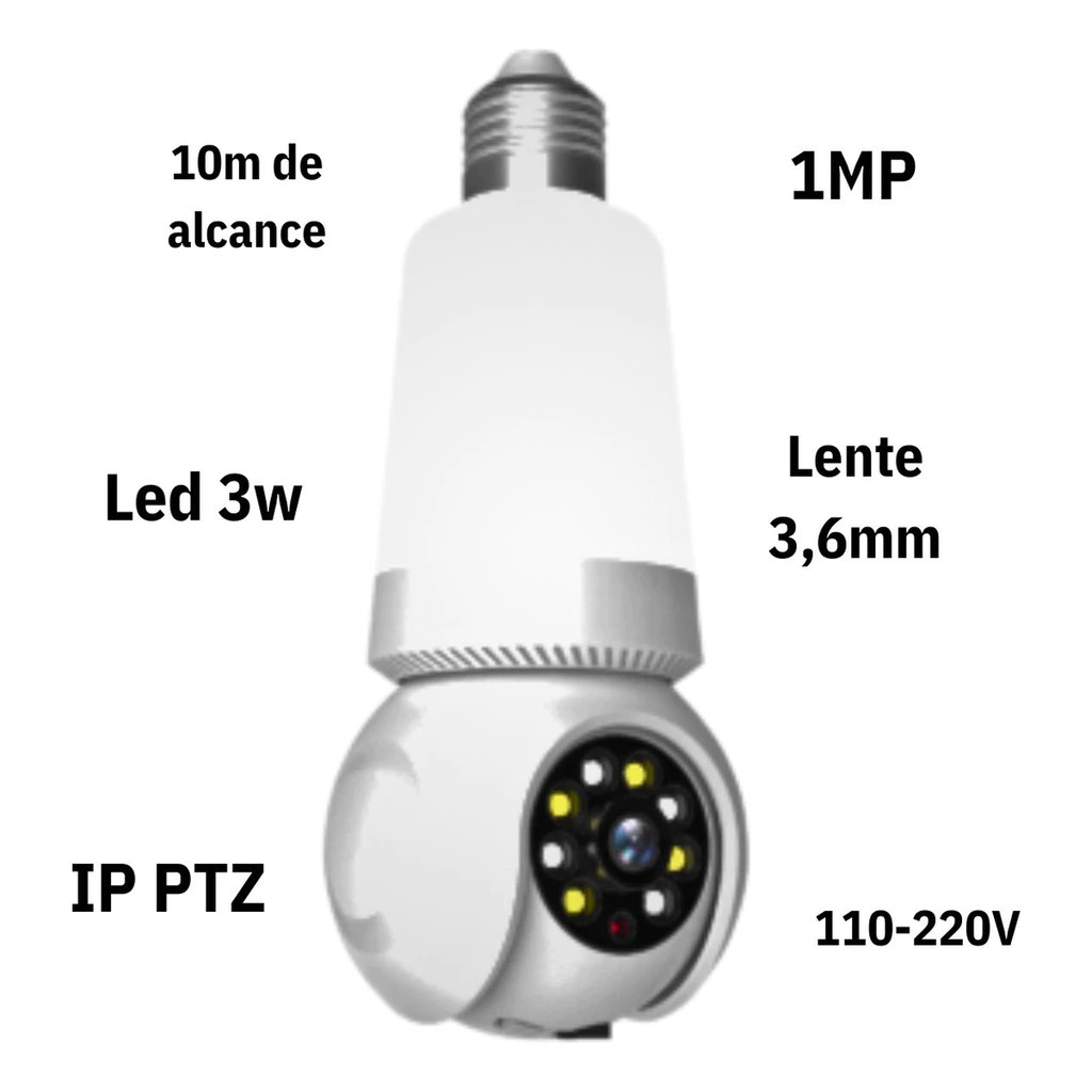 Câmera IP Lâmpada LED 3W Sigma Aitek | Visão Noturna Colorida, PTZ 355°, 1MP, Wi-Fi