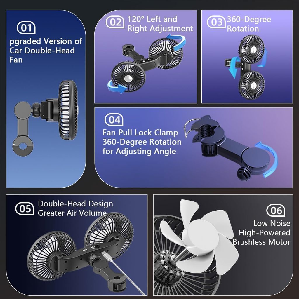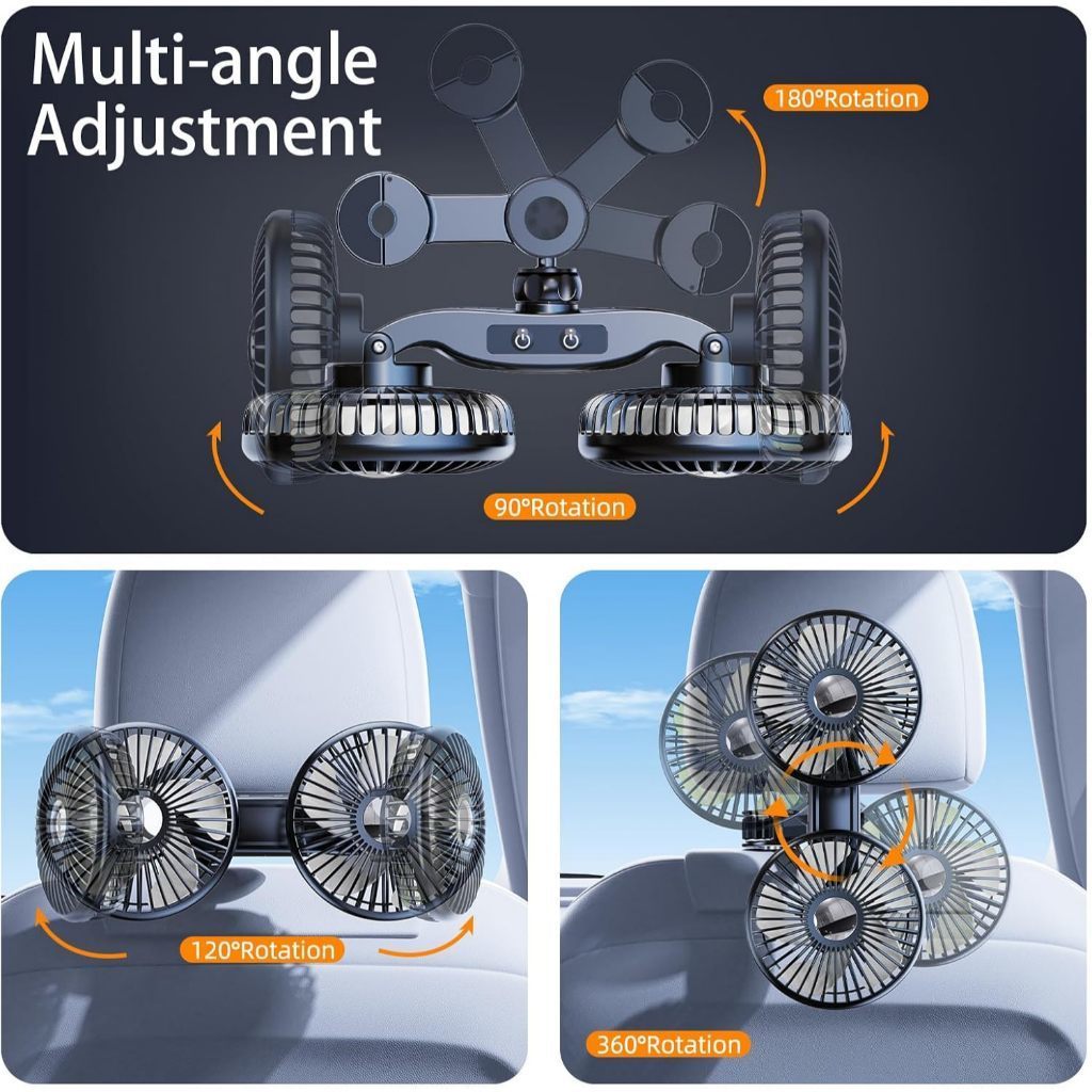 Ventilador Automotivo Duplo USB Rotação 360°