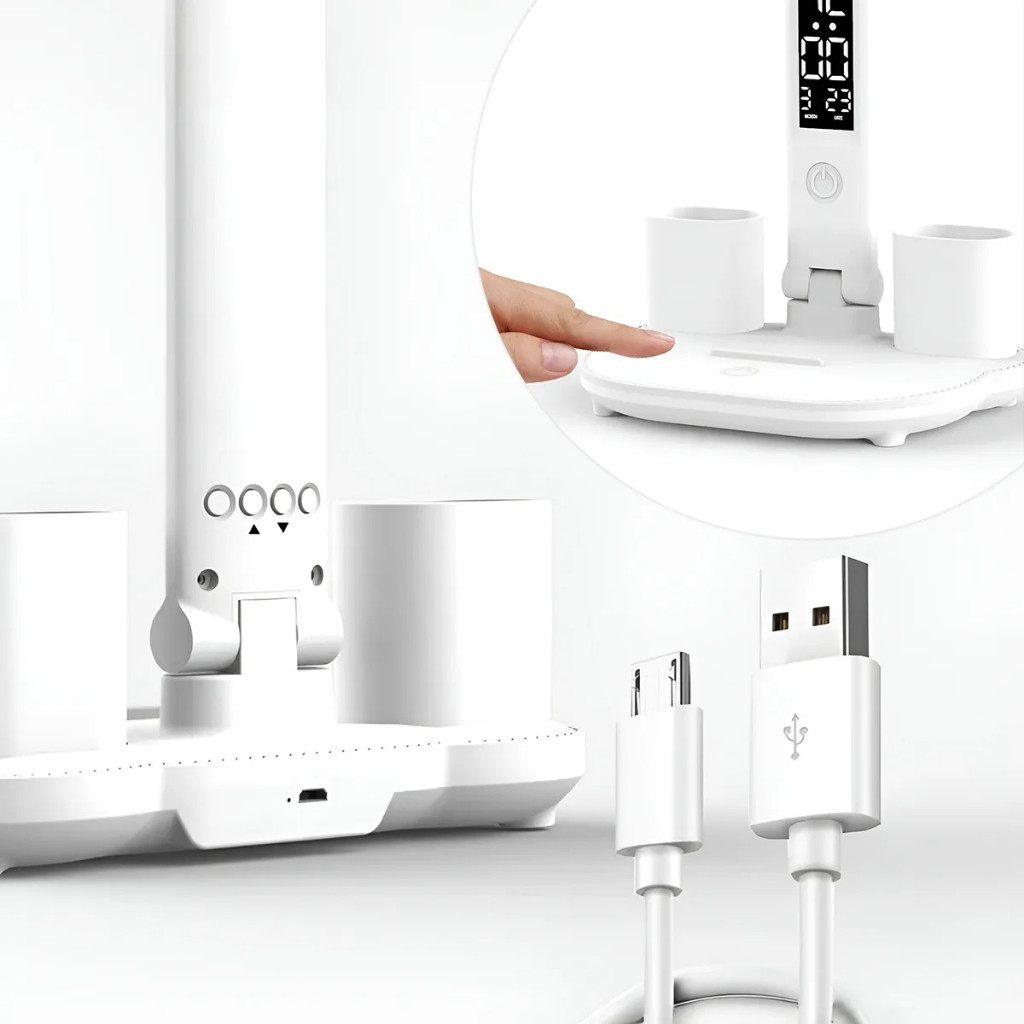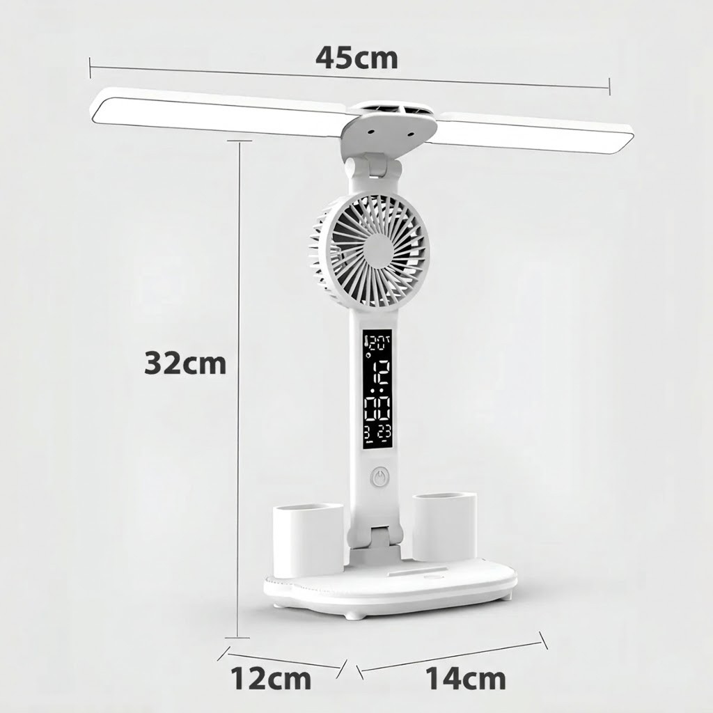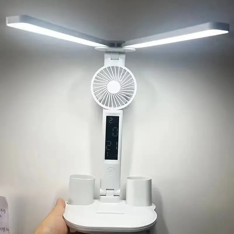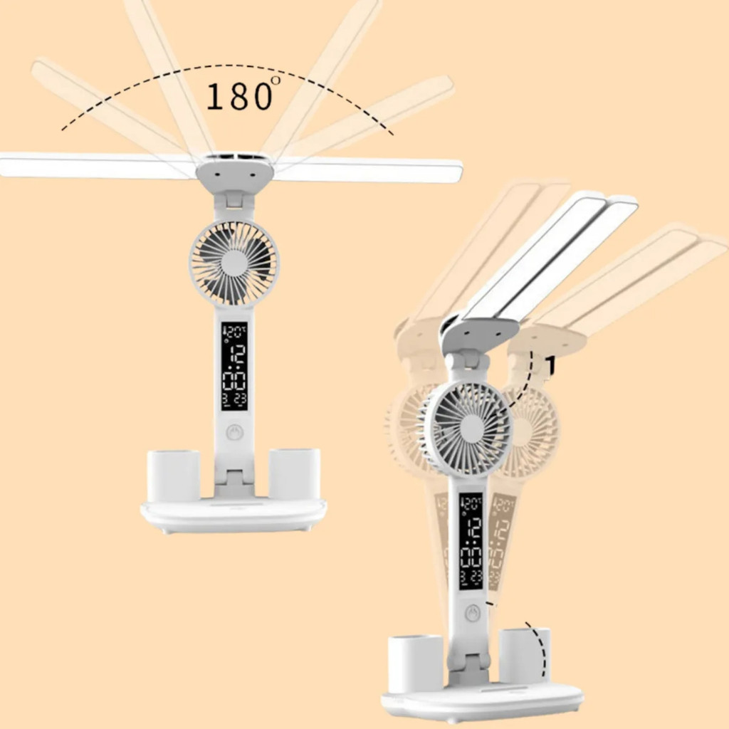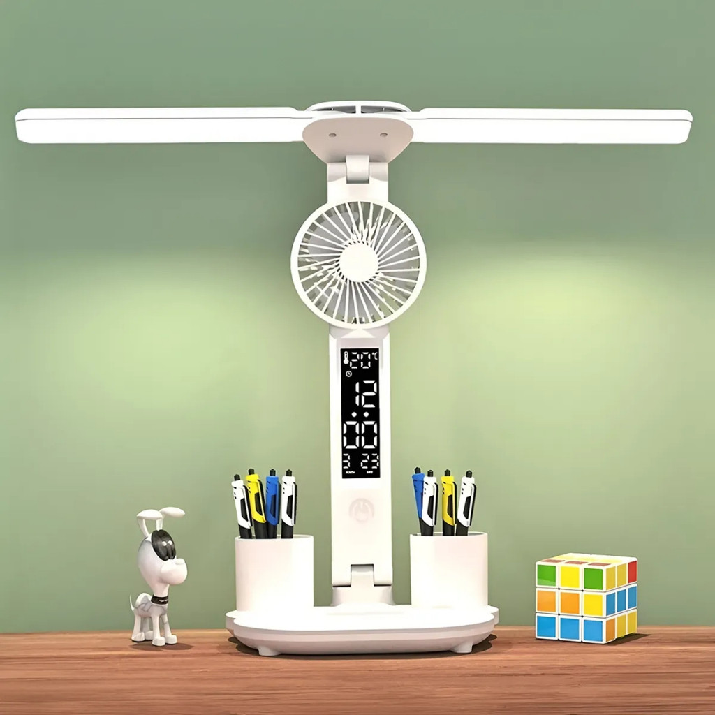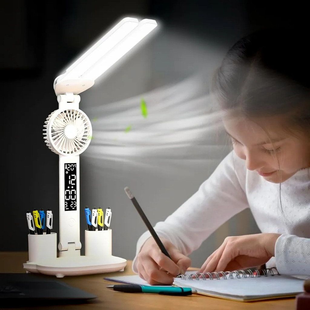Luminária De Mesa Articulável Com Ventilador LED 3 Cores Touch Bateria 2600mAh ON-LM301