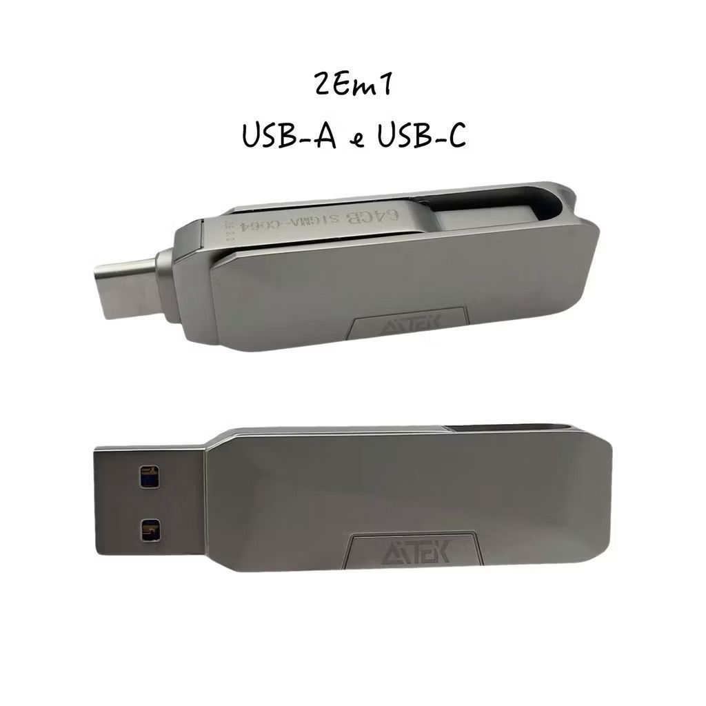Pen Drive 64GB 2em1 USB-A e USB-C Type-c Tipo C 3.0 Metal