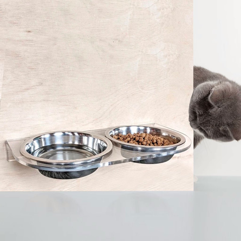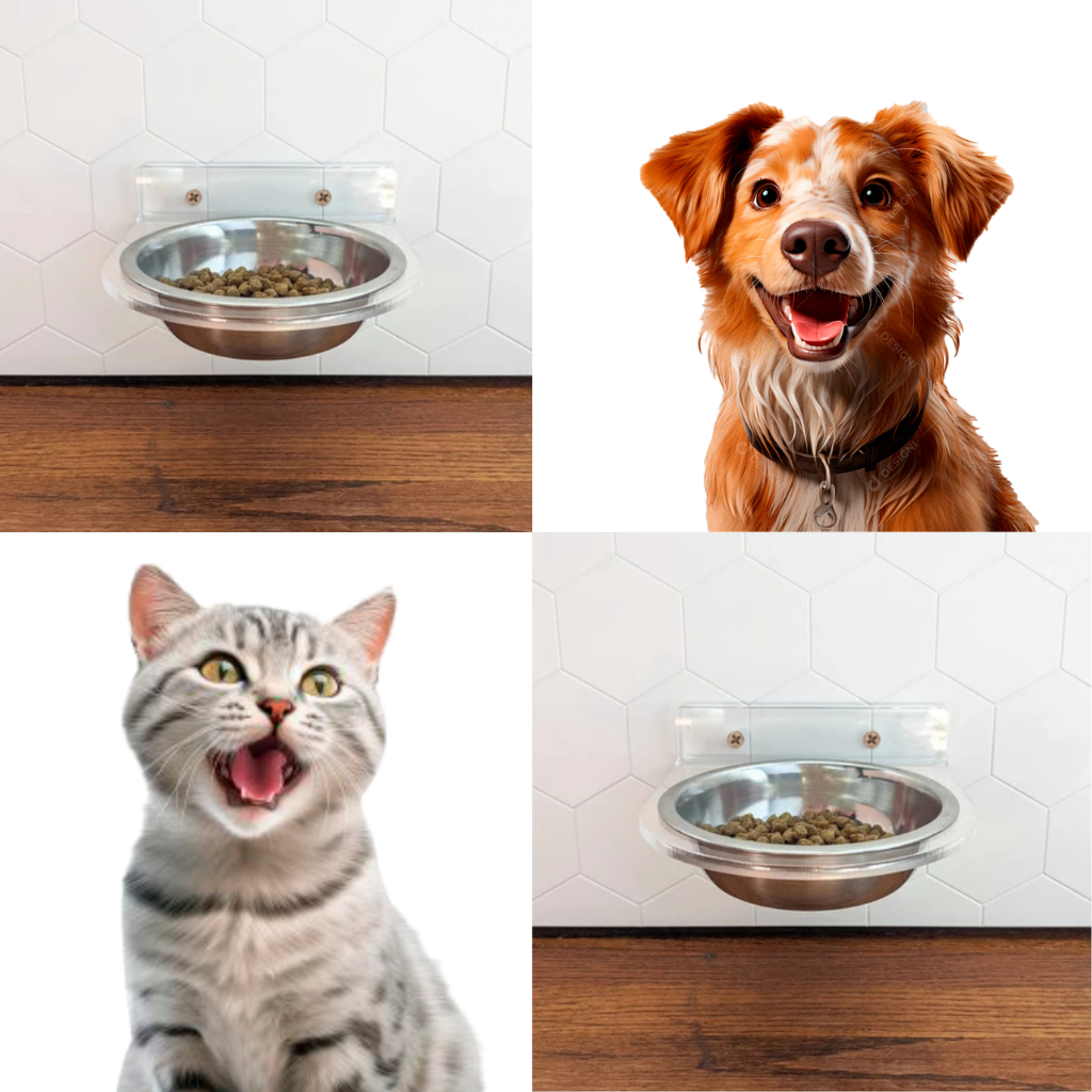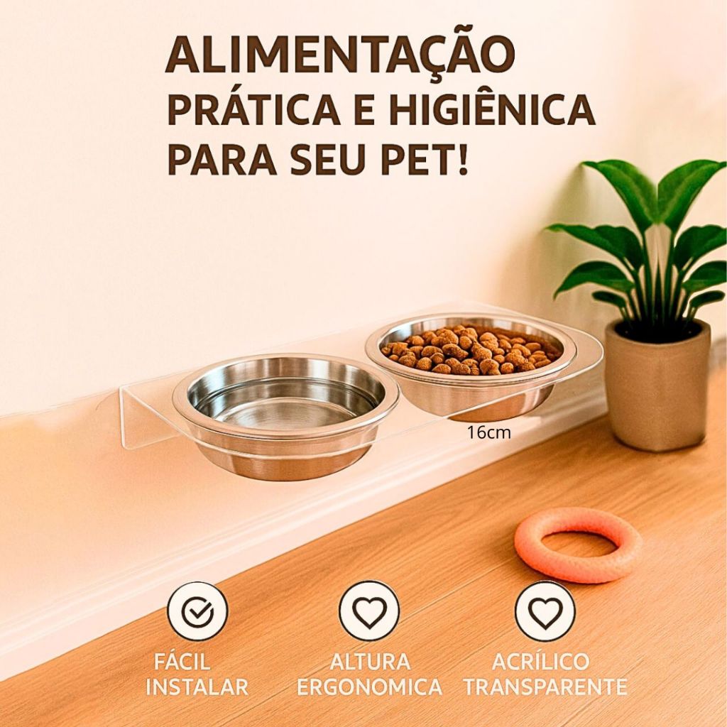 Comedouro Pet para Parede Elevado Acrílico Transparente Cão e Gato Bebedouro/Comedouro Vasilha Inox