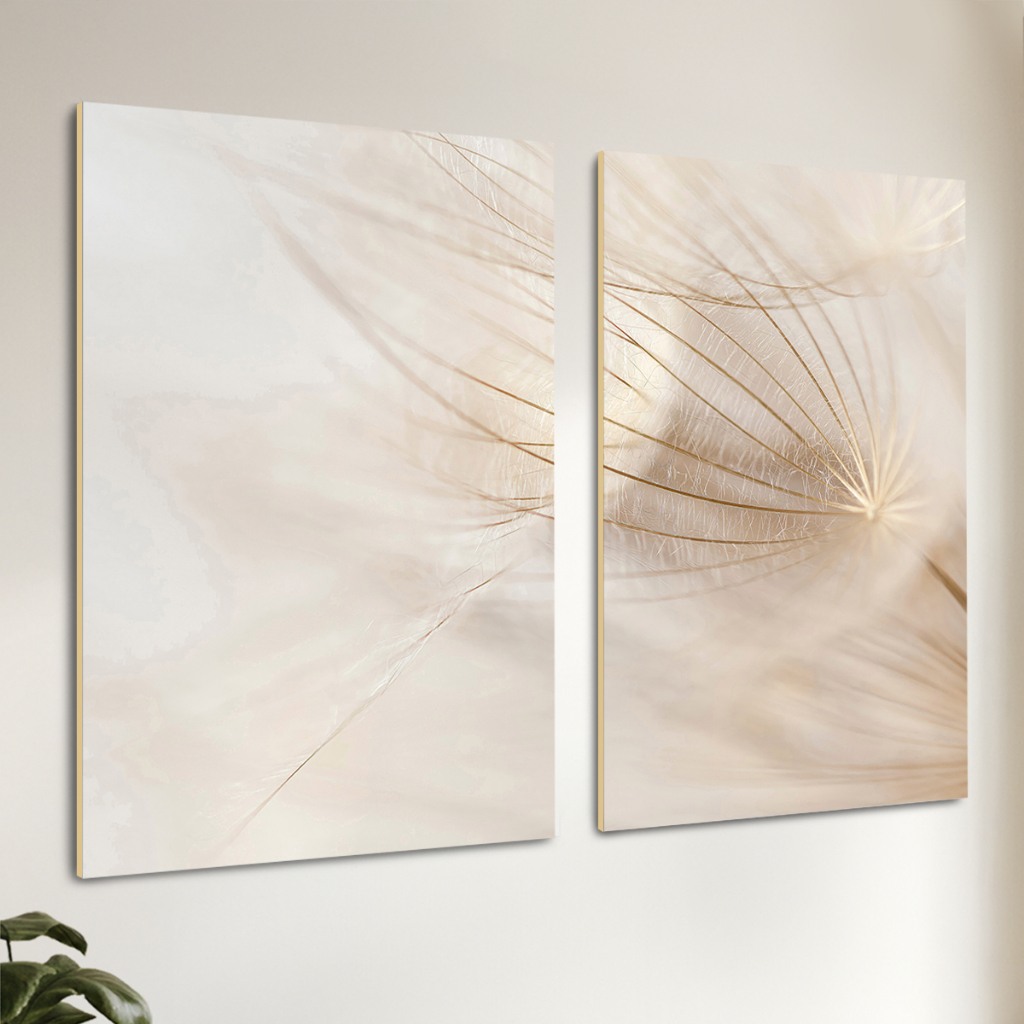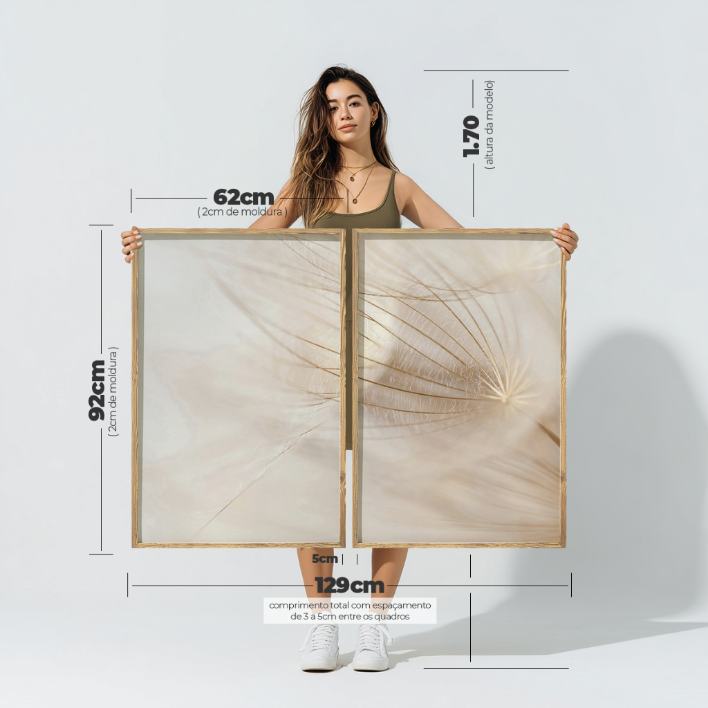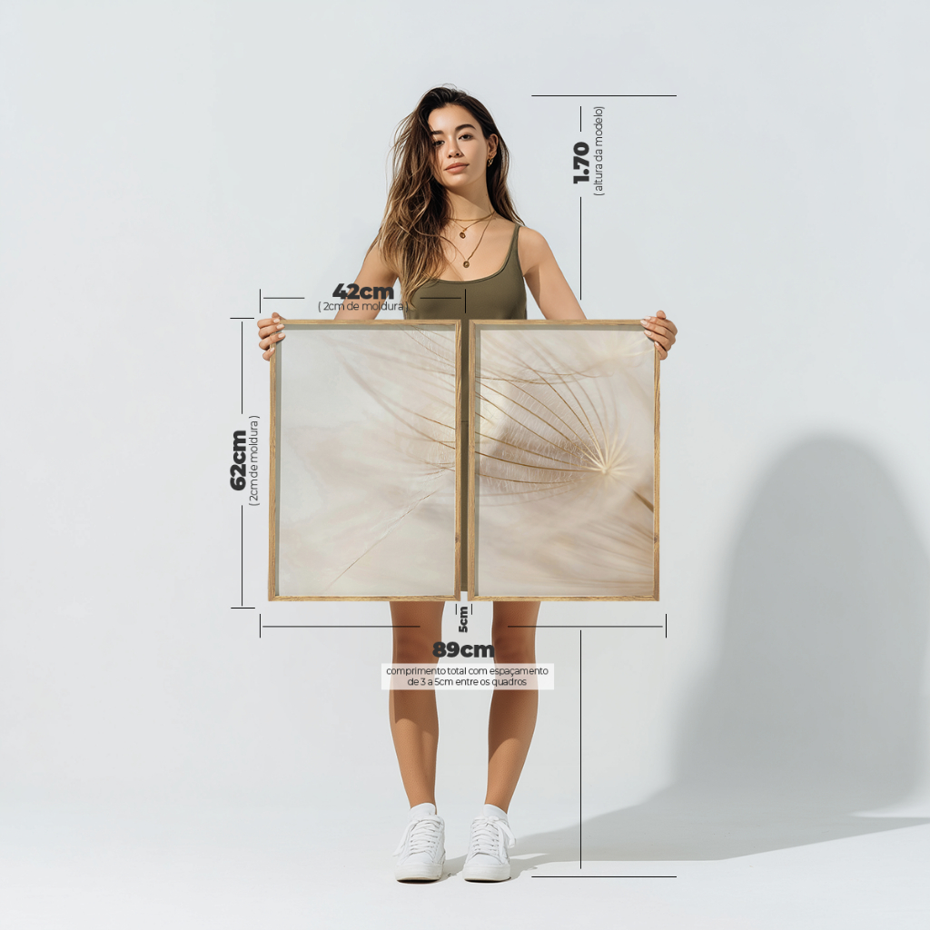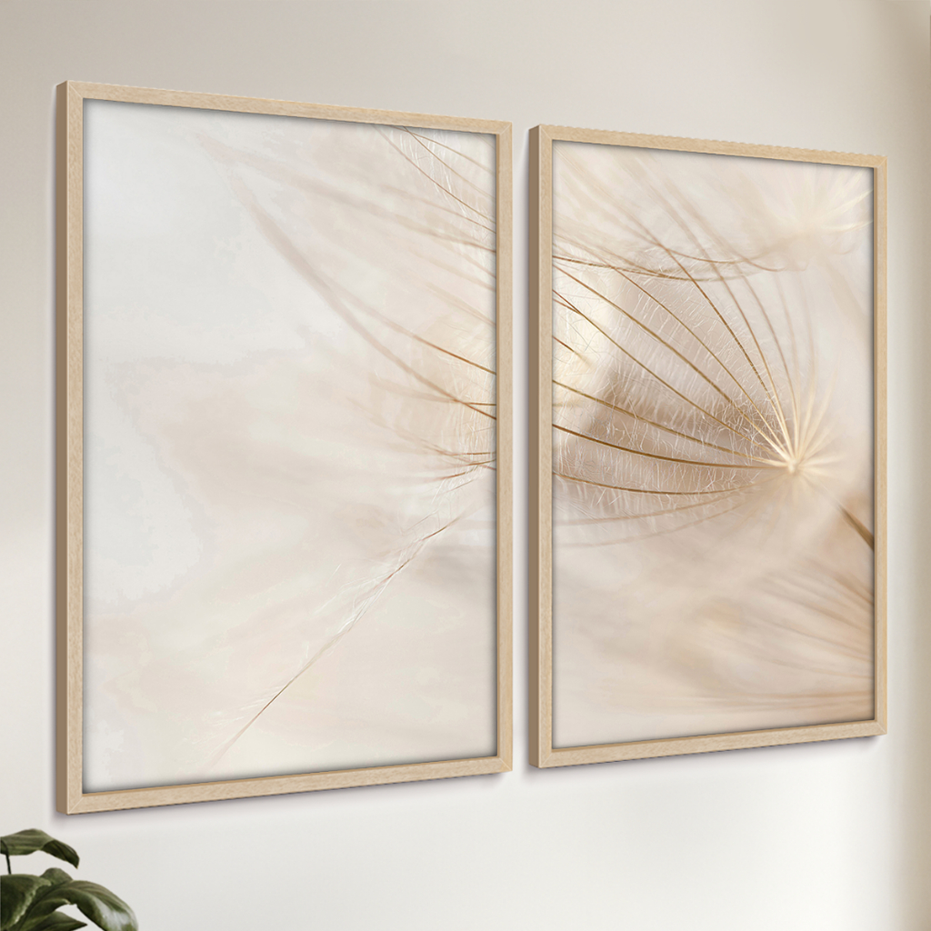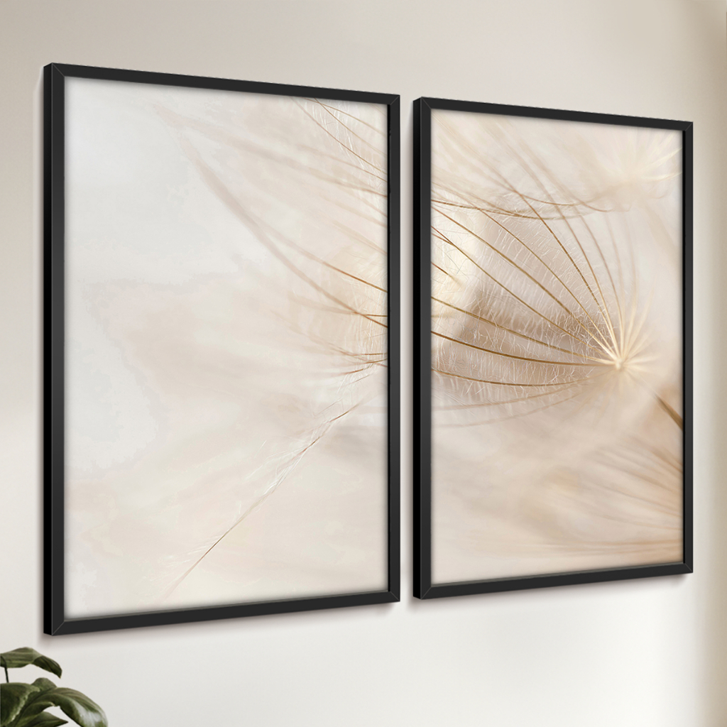 2 Quadros Decorativos COM/SEM Moldura Sala Quarto Escritório Floral Sementes Dente-de-Leão Harmonia