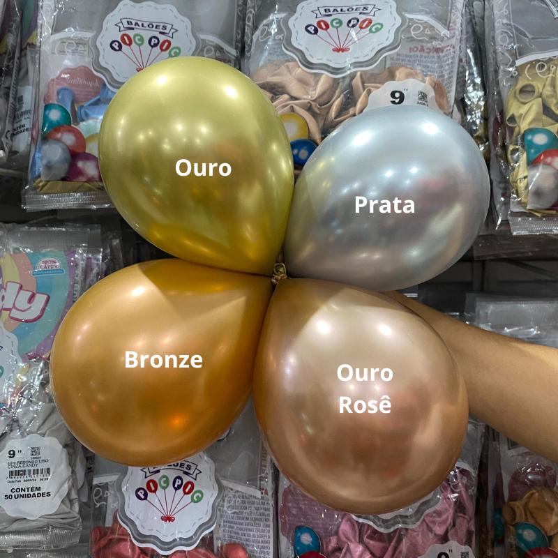 25 Balão Bexiga para Festa Metalizado Cromado Platino N° 5, 9 ou 10 pic pic