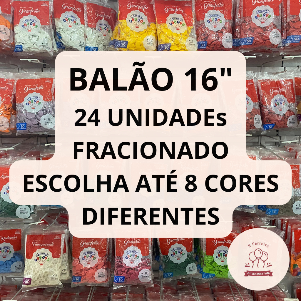 Balão Bexiga para Festa 16 Polegadas 24 Unidades Fracionado Até 8 Cores Diferentes Pic Pic