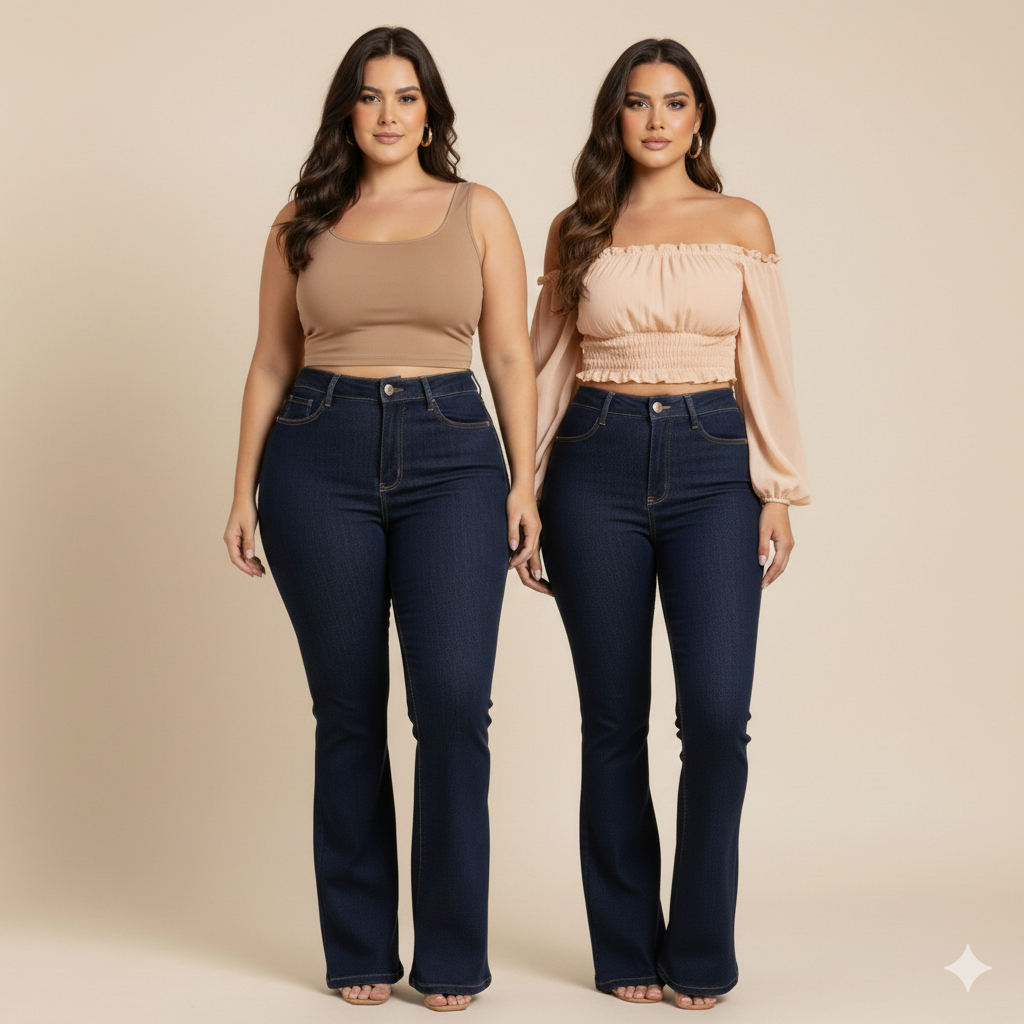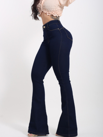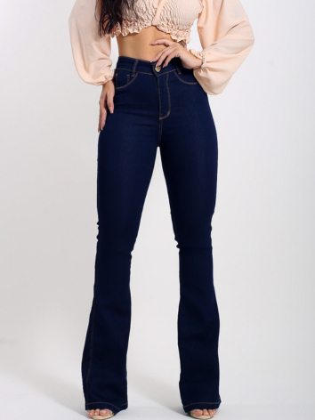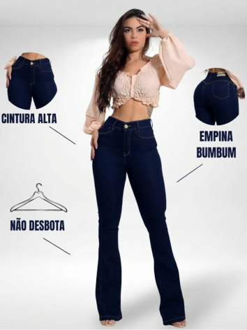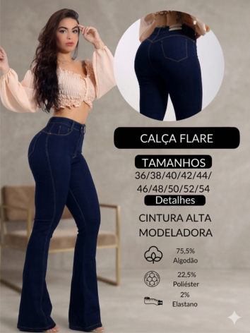 Calça Jeans Flare Plus size Feminina Cos Alto Levanta Bumbum Com Lycra Boca De Sino Premium