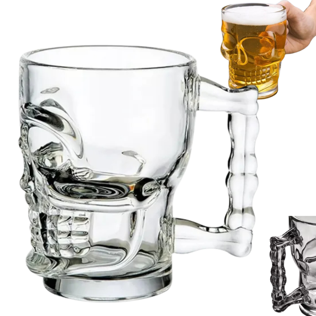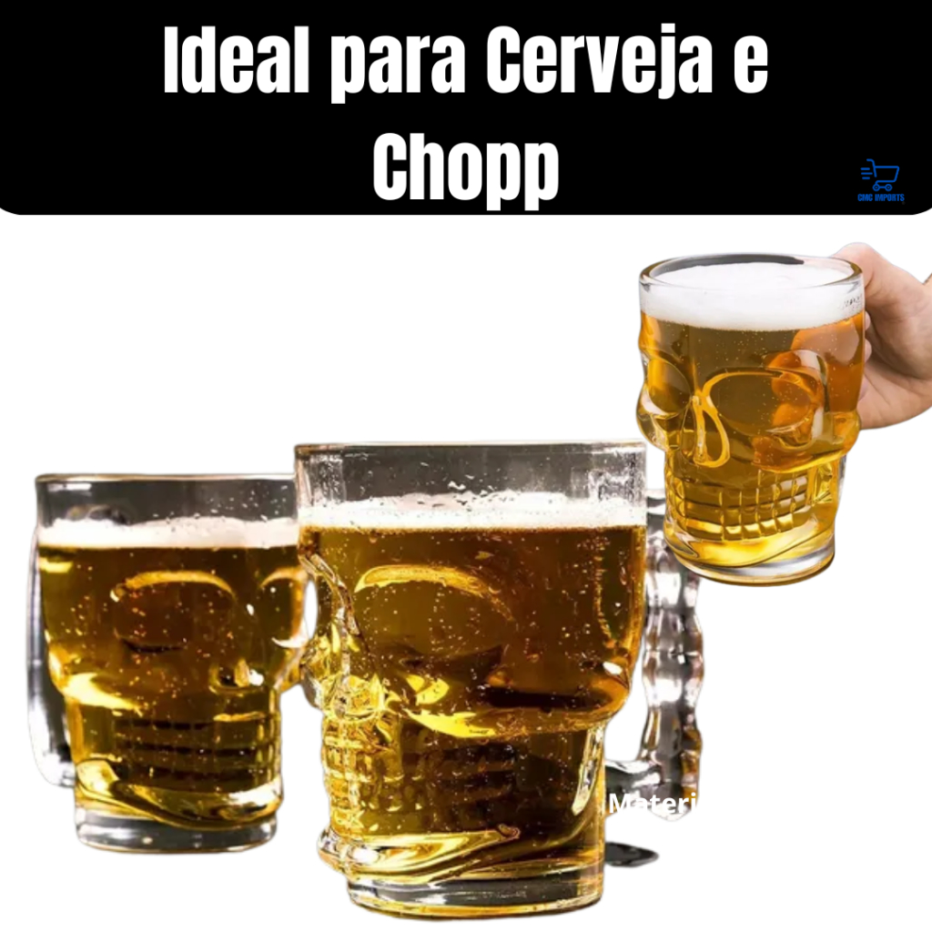 Kit 2 Canecas Chopp E Cerveja De Vidro Caveira Style 500ml