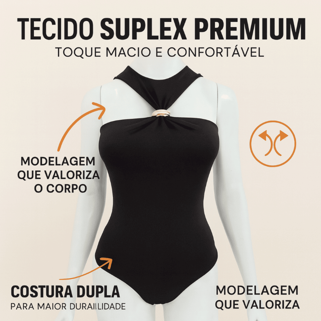 Body Feminino Elegante – Suplex Premium + Argola Dourada Exclusiva