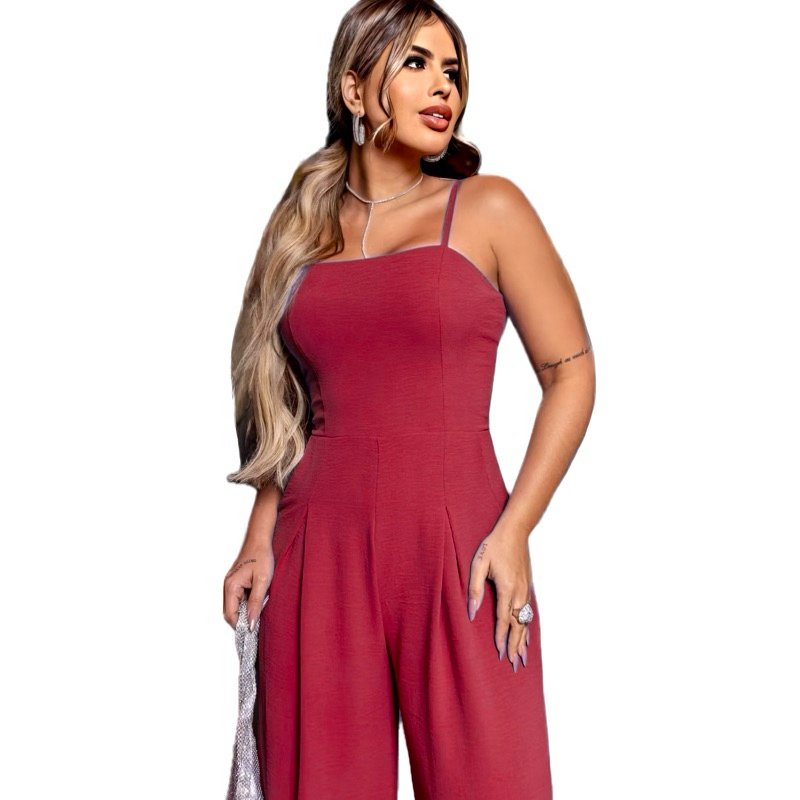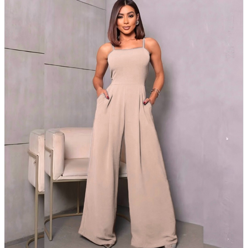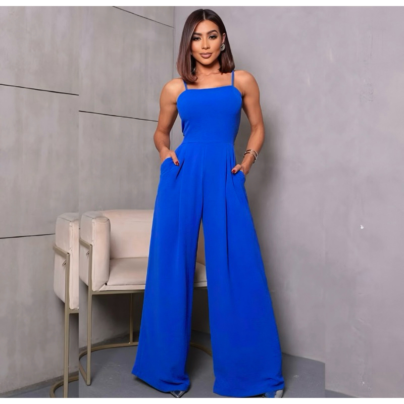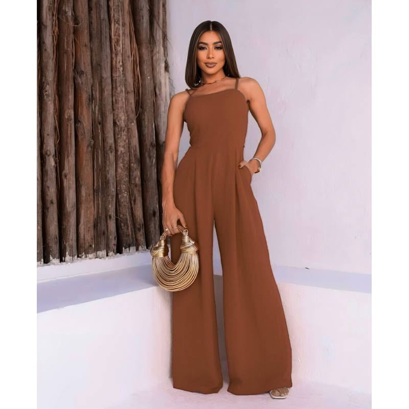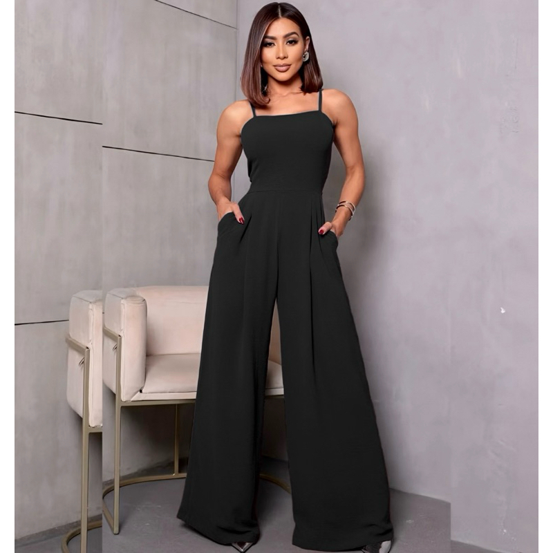 MACACÃO FEMININO PANTALONA COM ALÇA REGULÁVEL TECIDO DUNA TENDÊNCIA