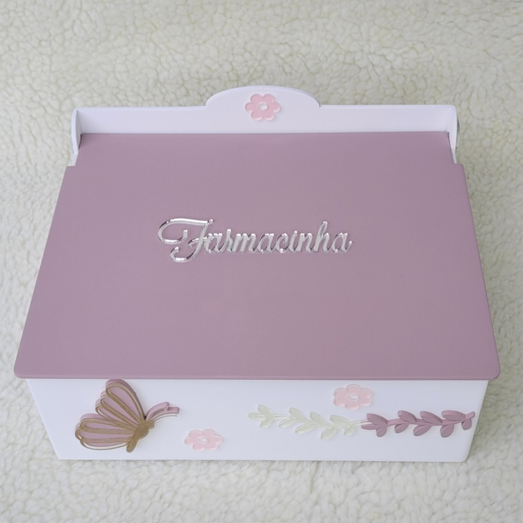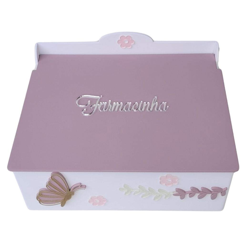 Farmacinha Jardim Encantado Flor e Borboleta em MDF para Quarto de Bebê Menina