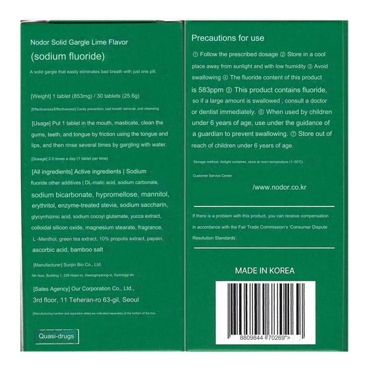NODOR Lavagem Bucal Sólida Portátil Para Mau Hálito , Língua Revestida E Remoção De Tártaro 30 Comprimidos 25,6g