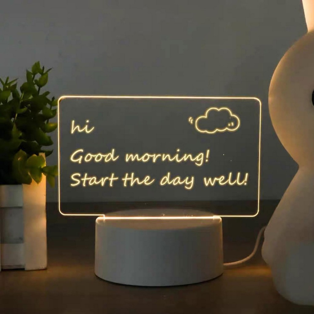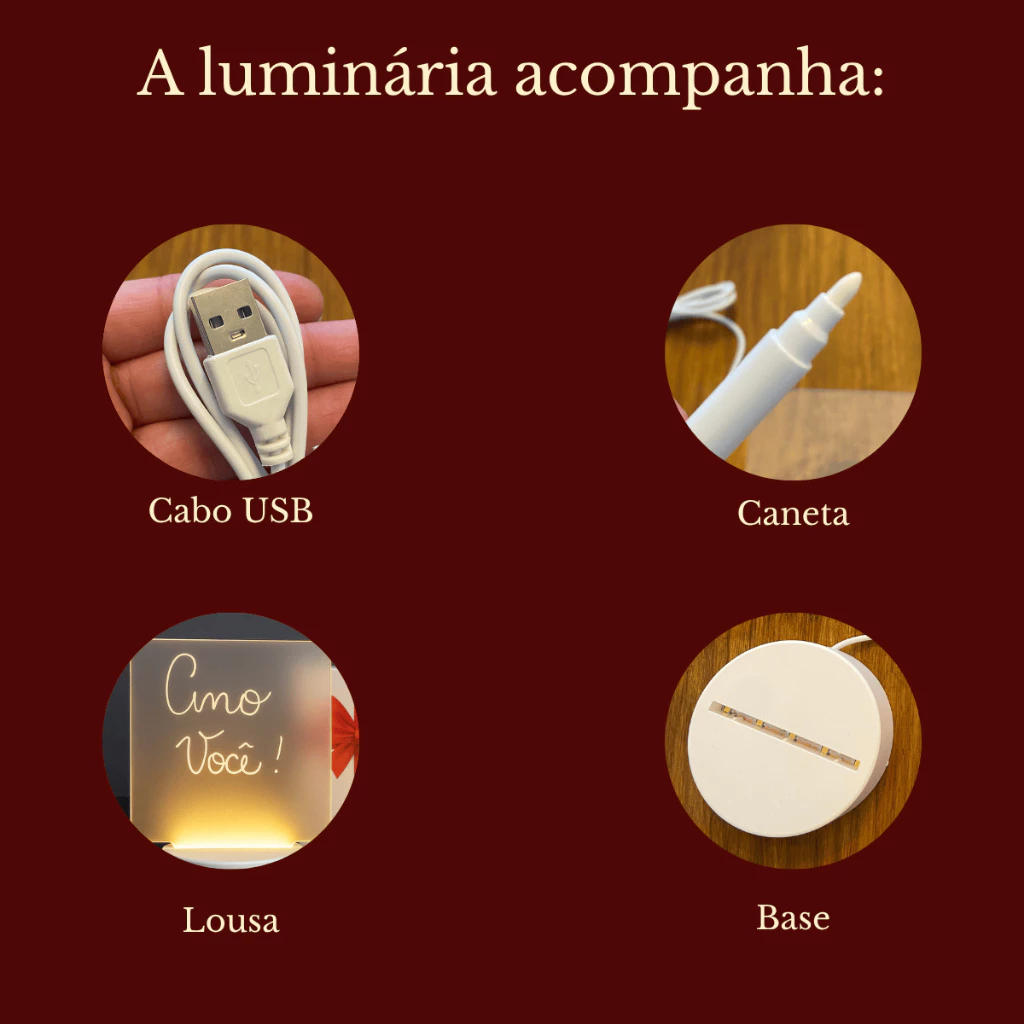 Luminária 3D Led Lousa de Escrever Desenhar Quadro de Notas Anotações Acrílico Escreve Apaga