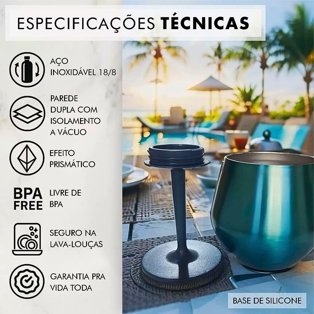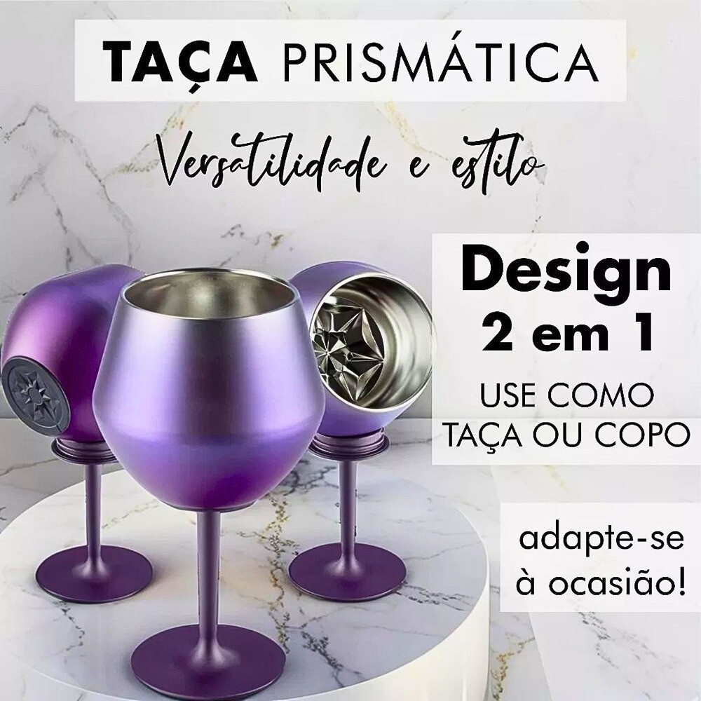 Taça Copo Térmico Aço Inoxidável 2 Em 1 Prismática de 410ml