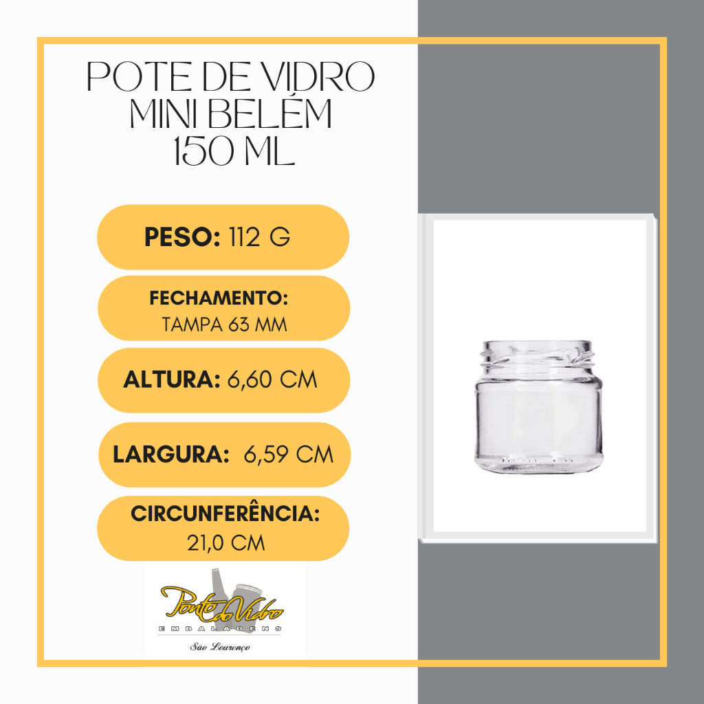 6 Un. Pote de vidro conserva Mini Belém de 150 ml com tampa e lacre