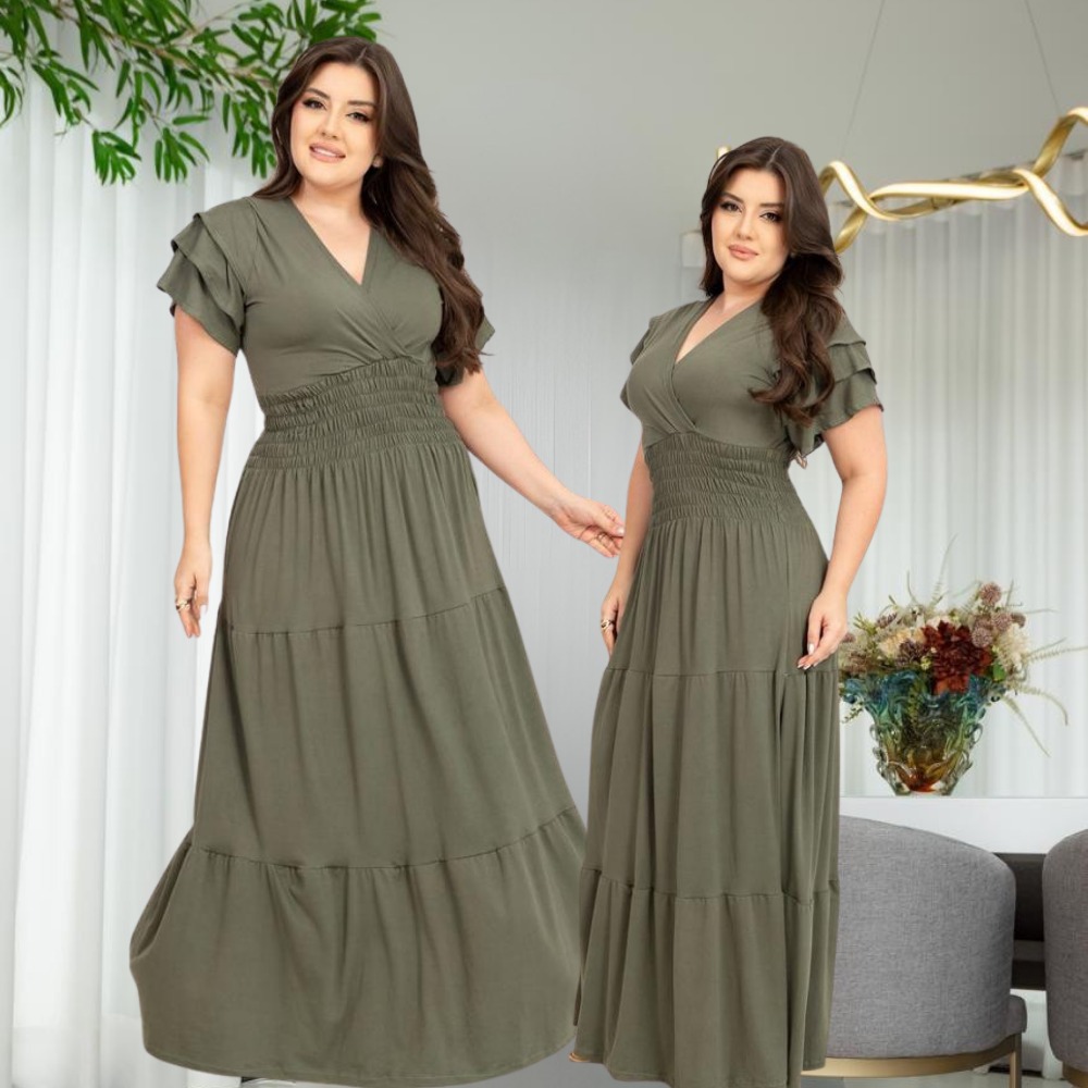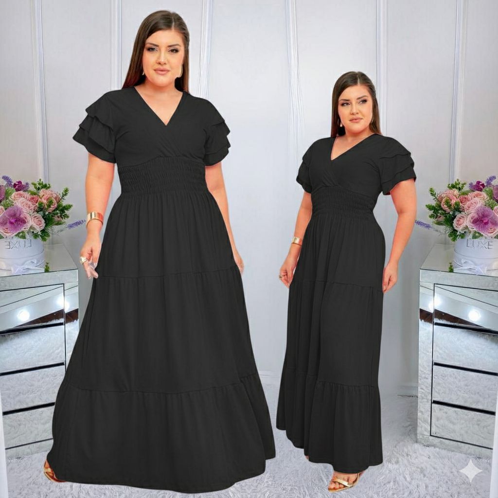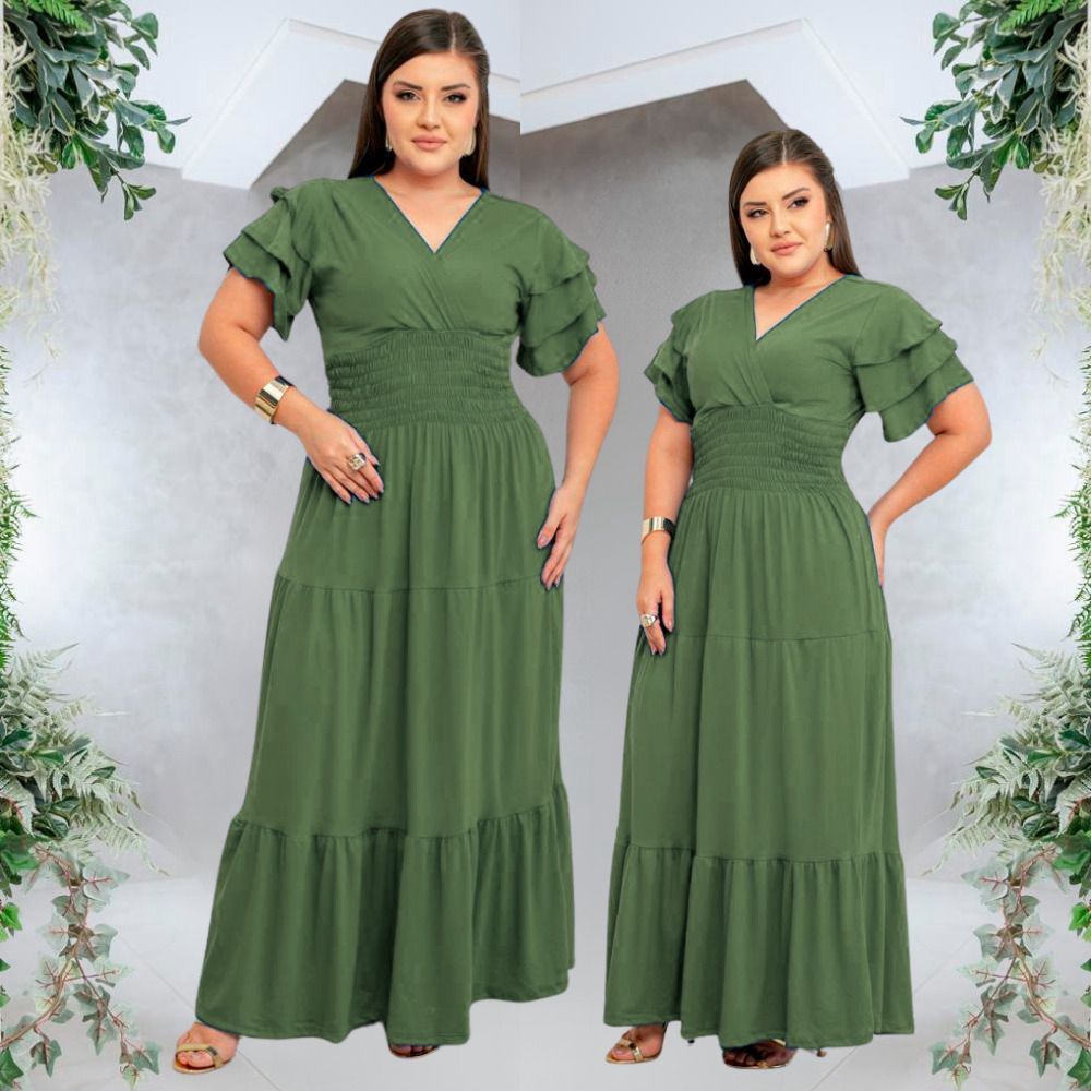 Vestido Feminino Longo Social Manga Estilosa Moda Evangelica Plus Size Do M ao EXG Para Congresso