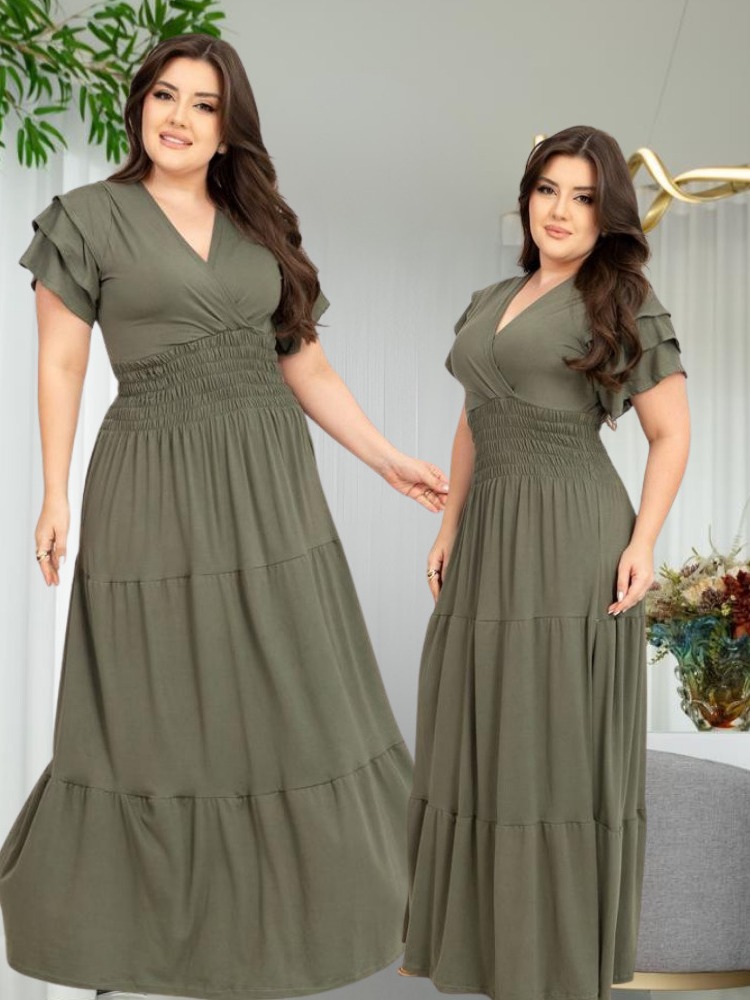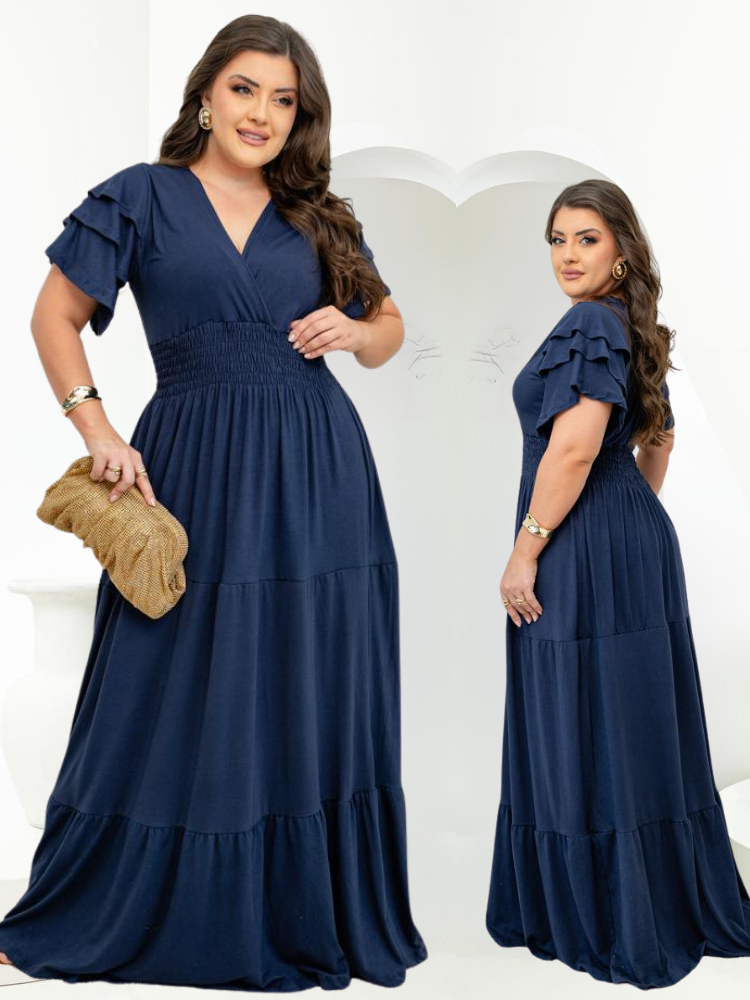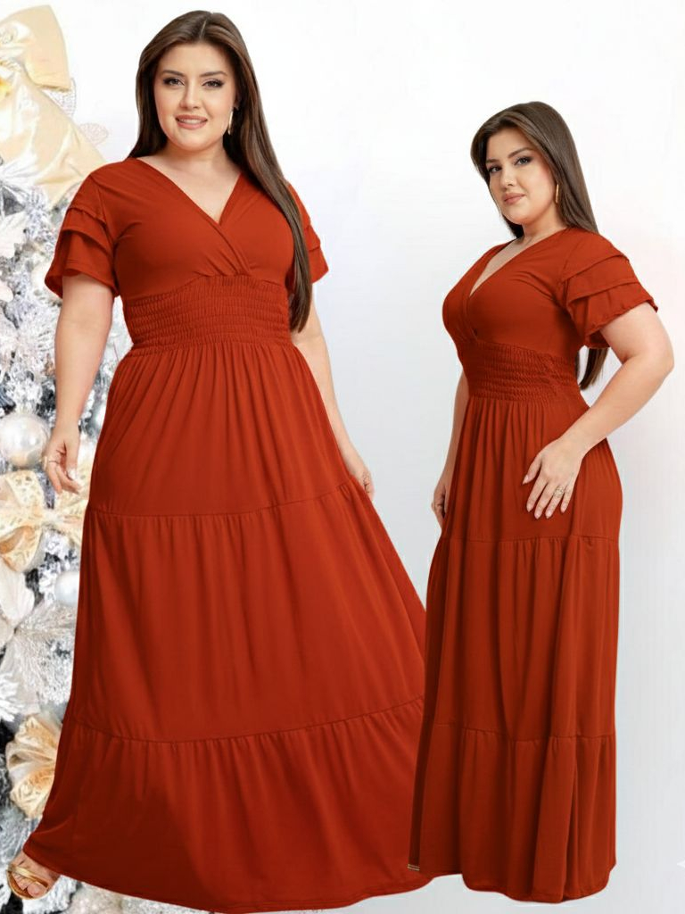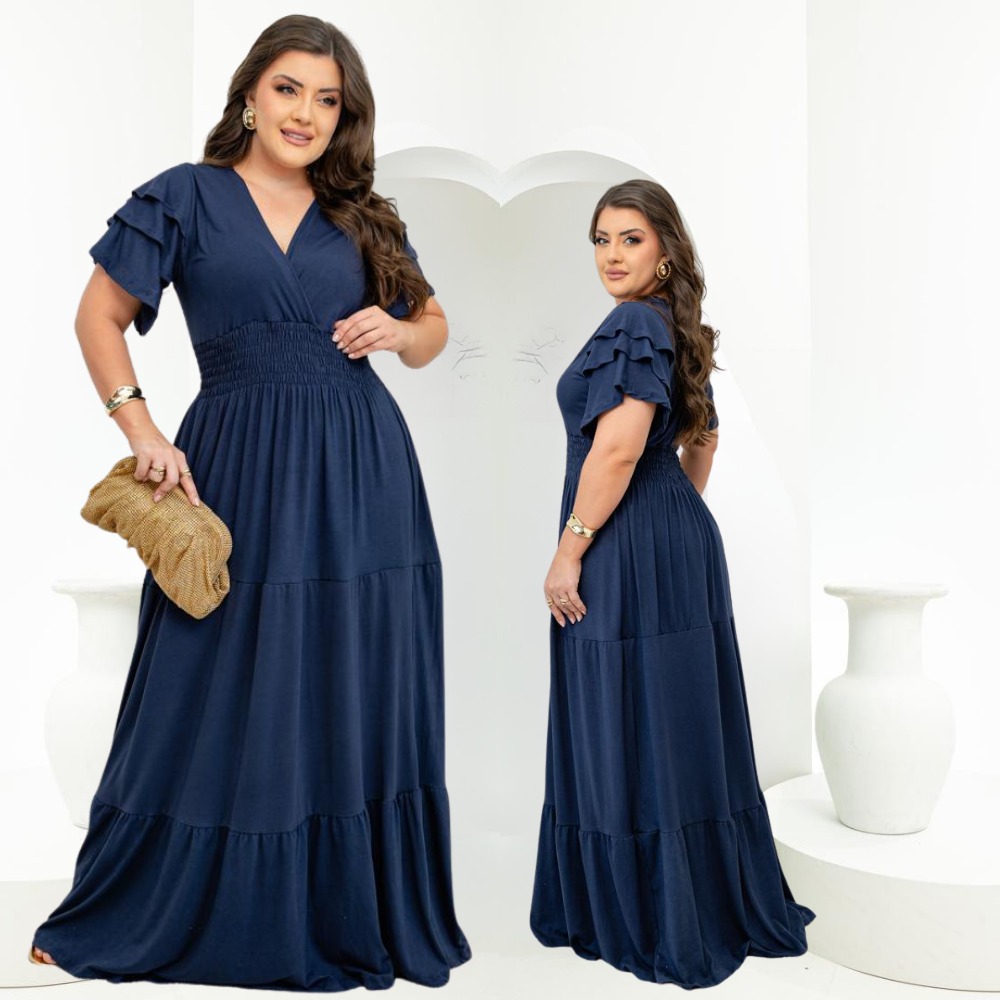 Vestido Feminino Longo Social Manga Estilosa Moda Evangelica Plus Size Do M ao EXG Para Congresso