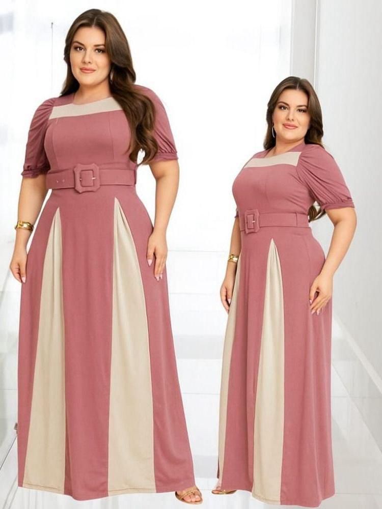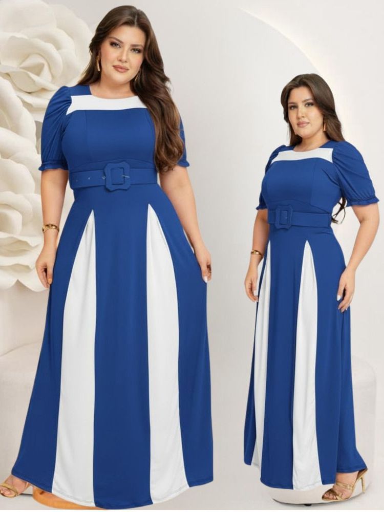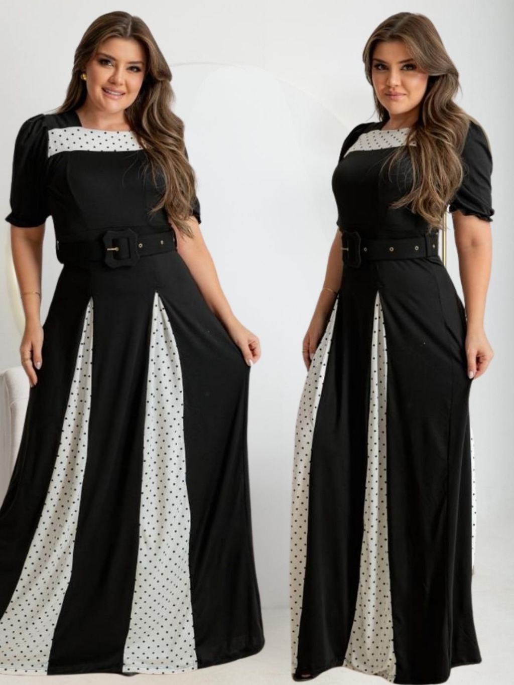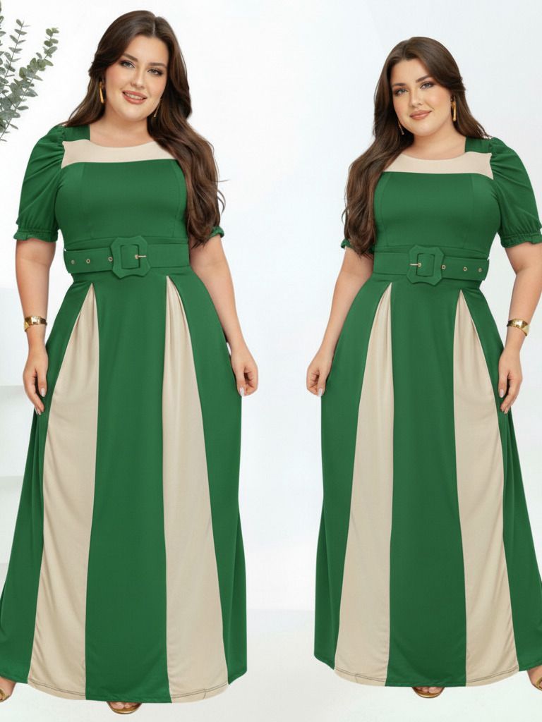 Vestido Feminino Longo Bicolor Social Manga Estilosa Cinto Moda Evangélica Plus Size Congresso