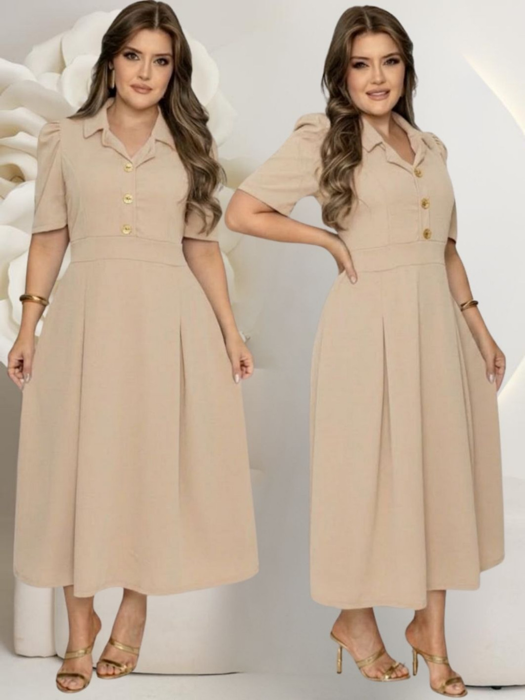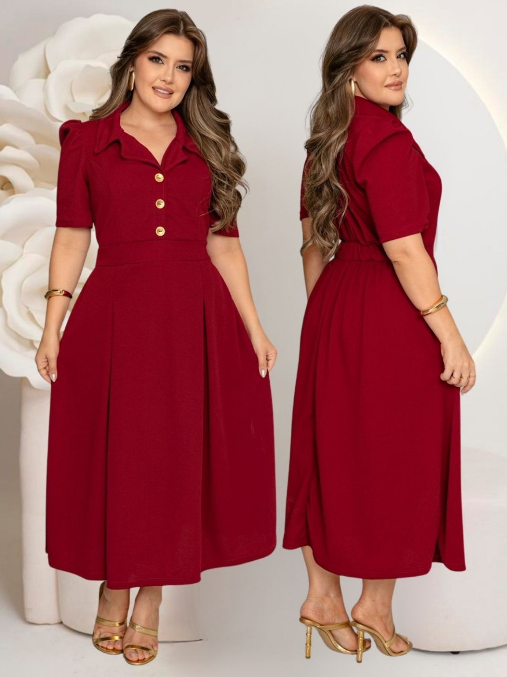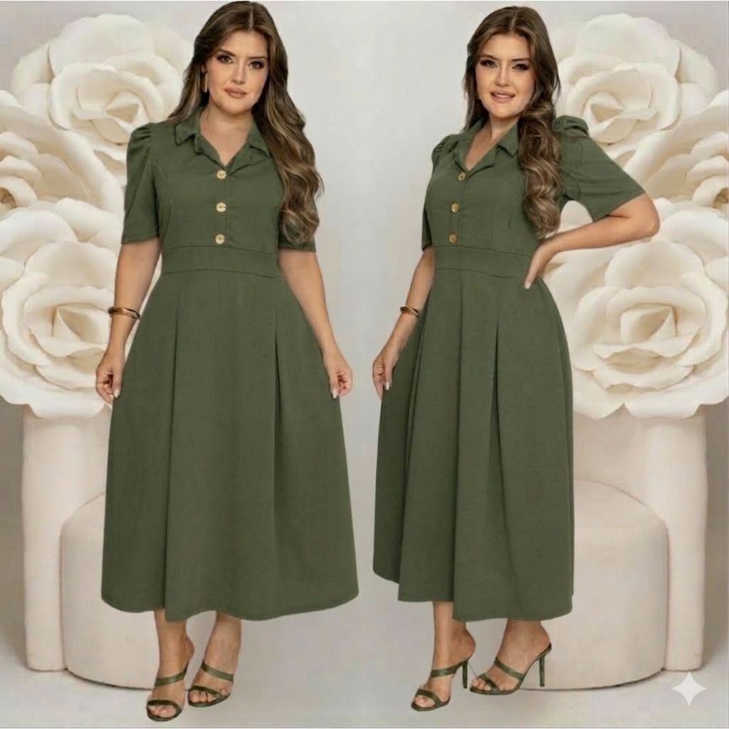 Vestido Feminino Social Manga Curta Com Botões Rodado Moda Evangelica Plus Size Fardamentos