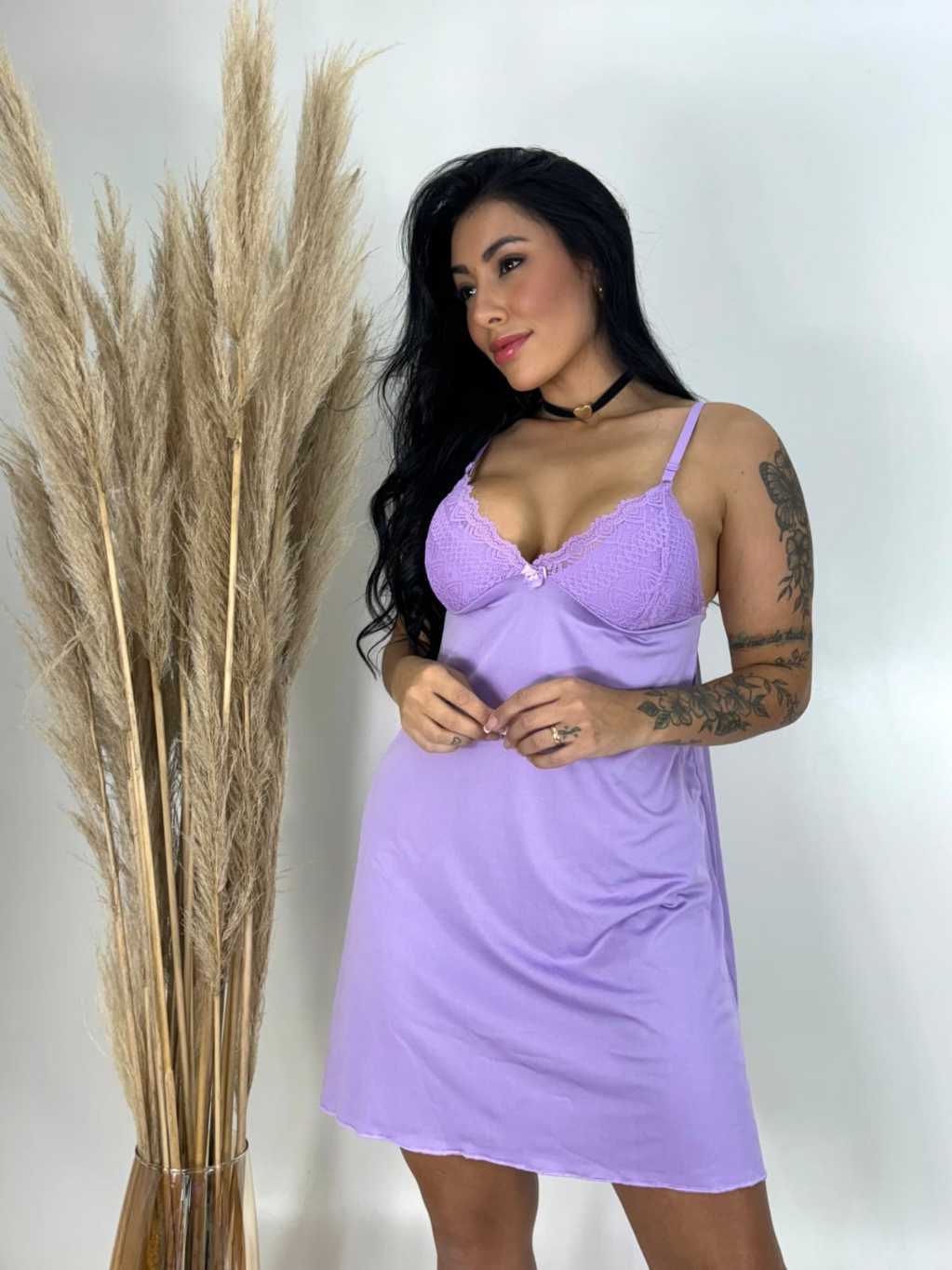 Camisola sem Bojo Feminina Renda Lingerie Pijama Noite Soltinha Moda Adulta Confortavel