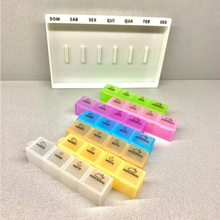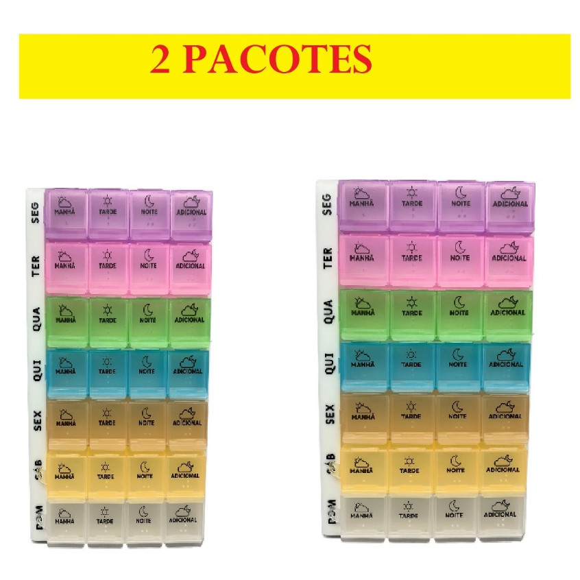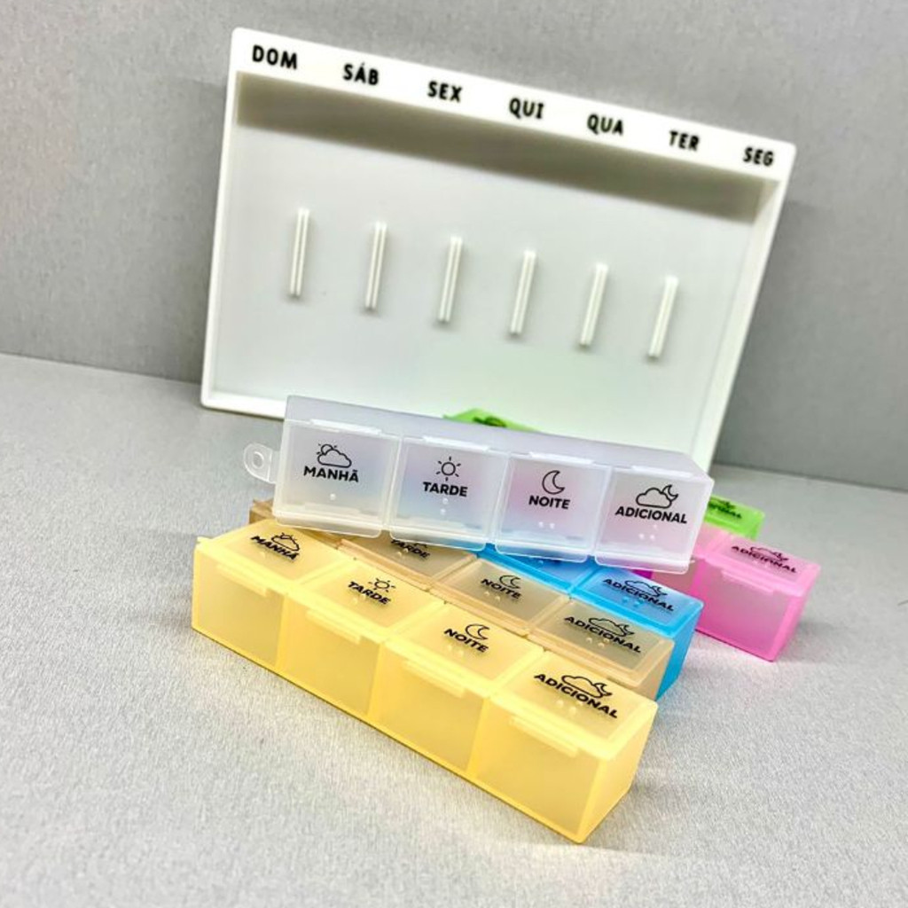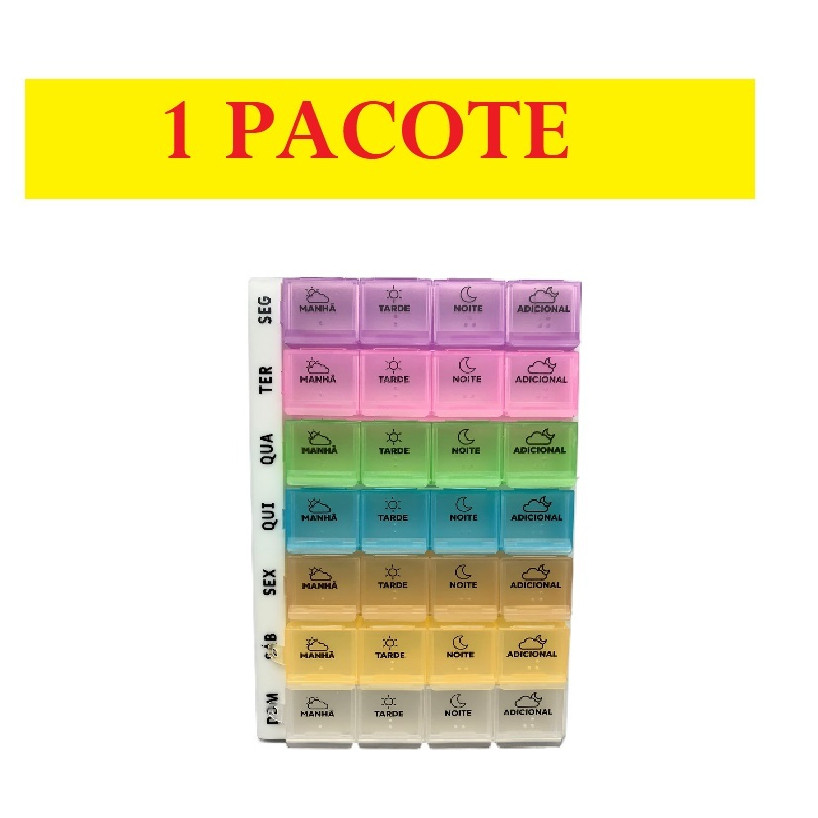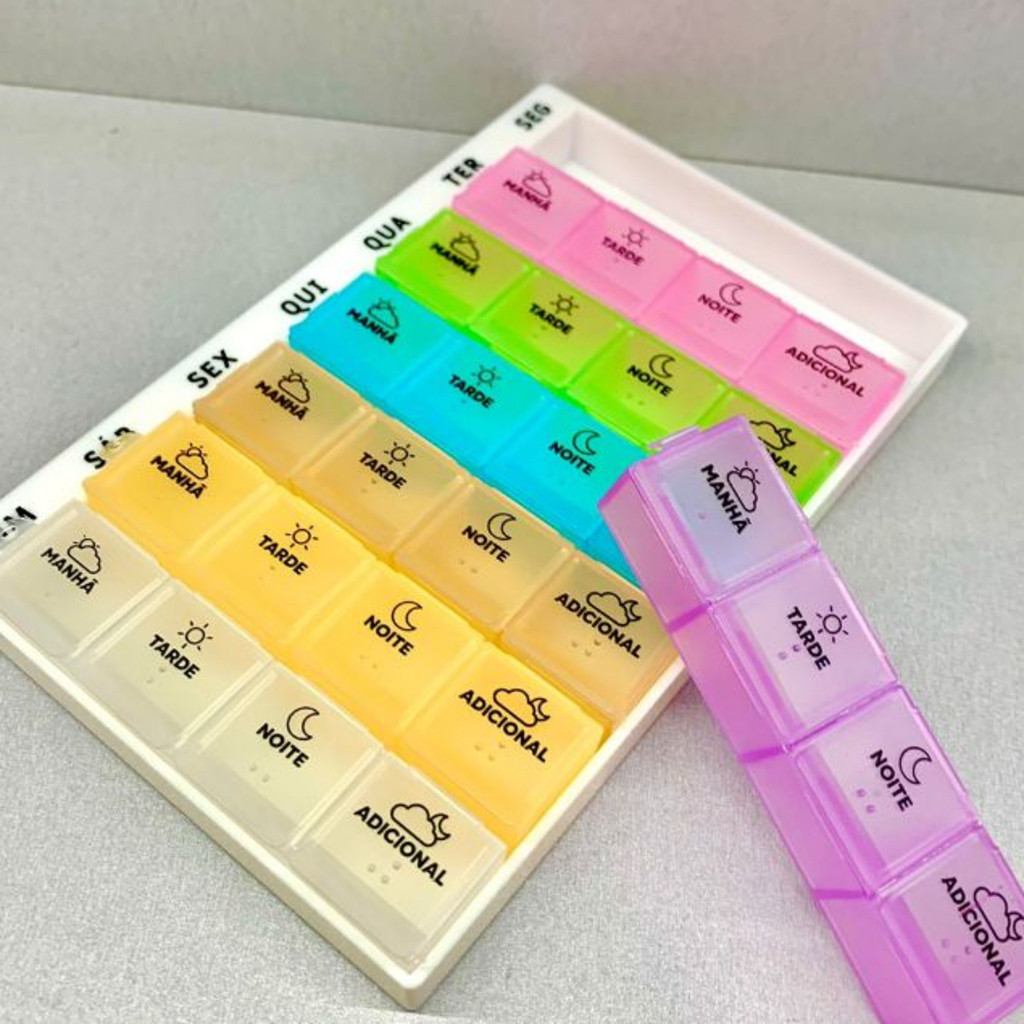 Porta Comprimidos Semanal 11x18cm Com 28 Compartimentos Multicoloridos Útil E Prático Remédios