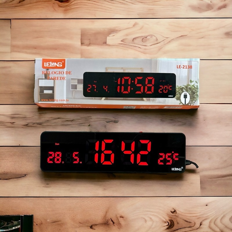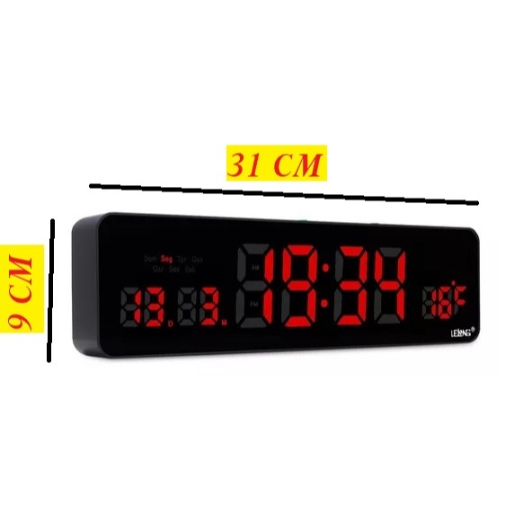 Relógio Digital 31x9CM Para Parede LeLong Alarme Calendário Temperatura Ajuste Automático