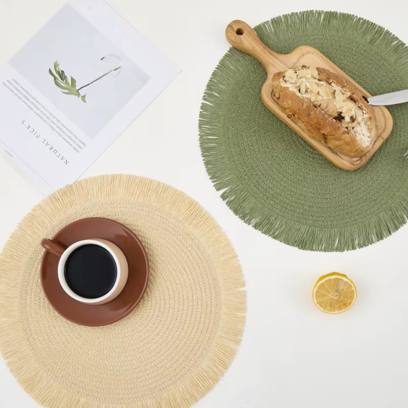 OFERTA Jogo Americano Redondo Borda Desfiado 38cm Descanso Decorativo Kit 2, 4 Ou 6 Peças Trançado