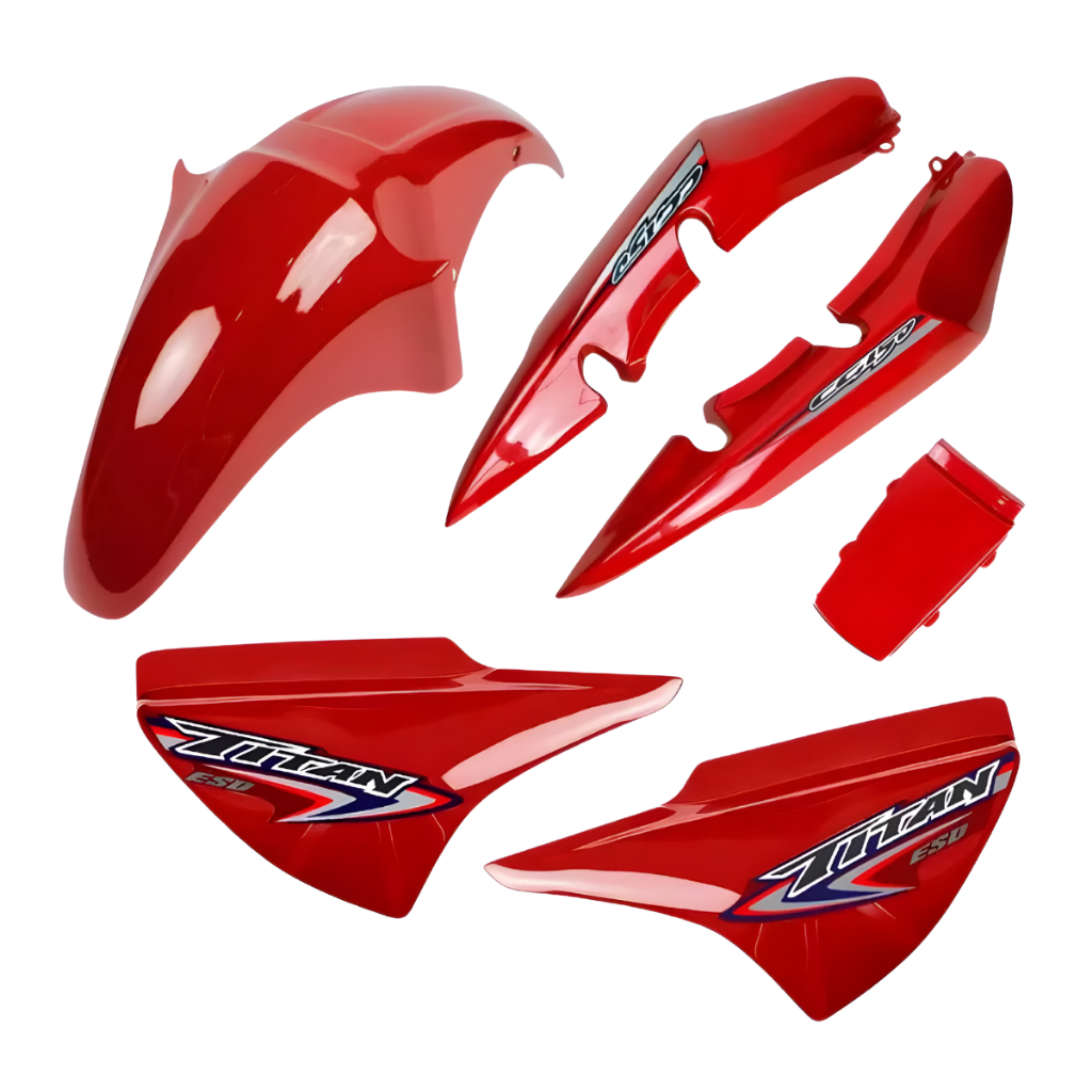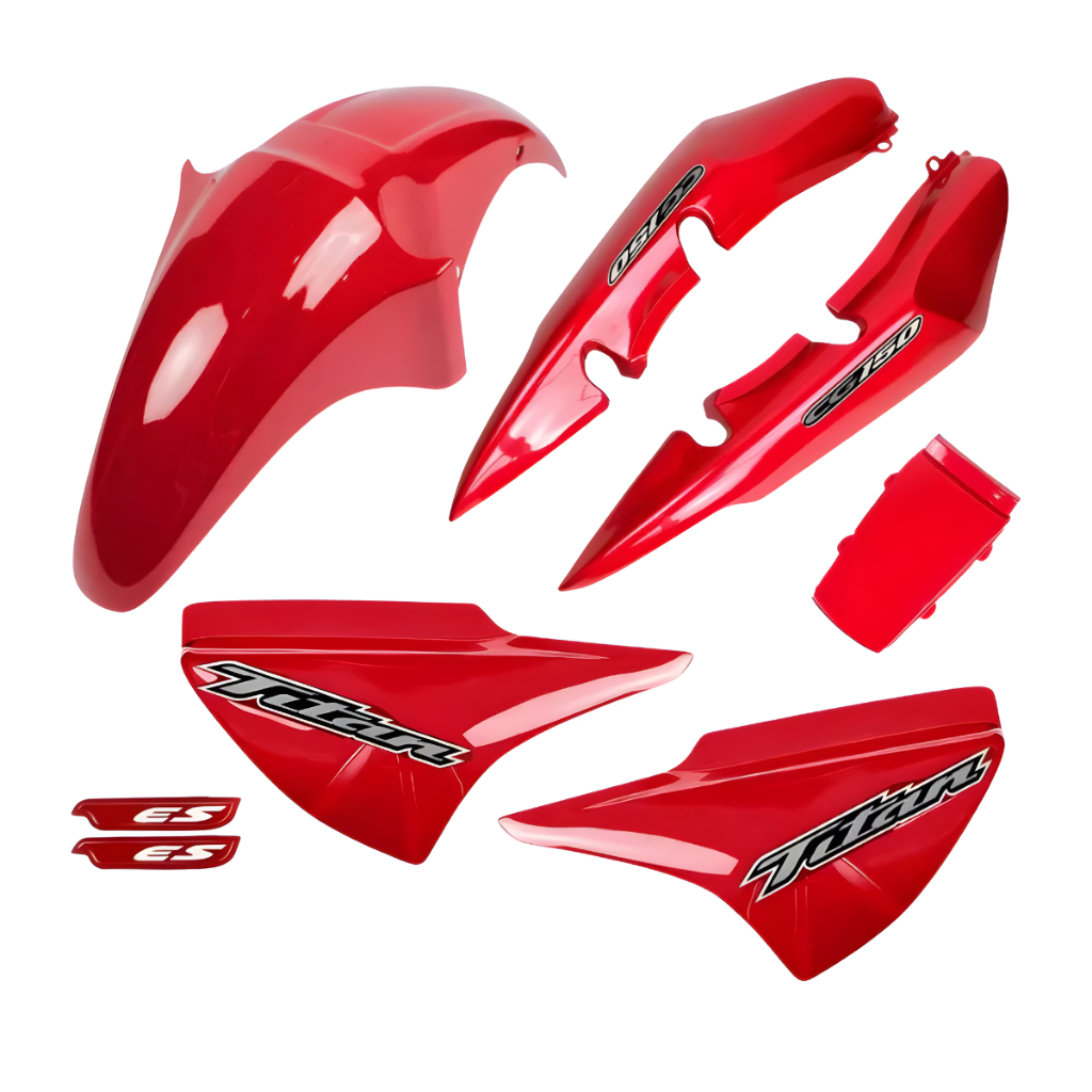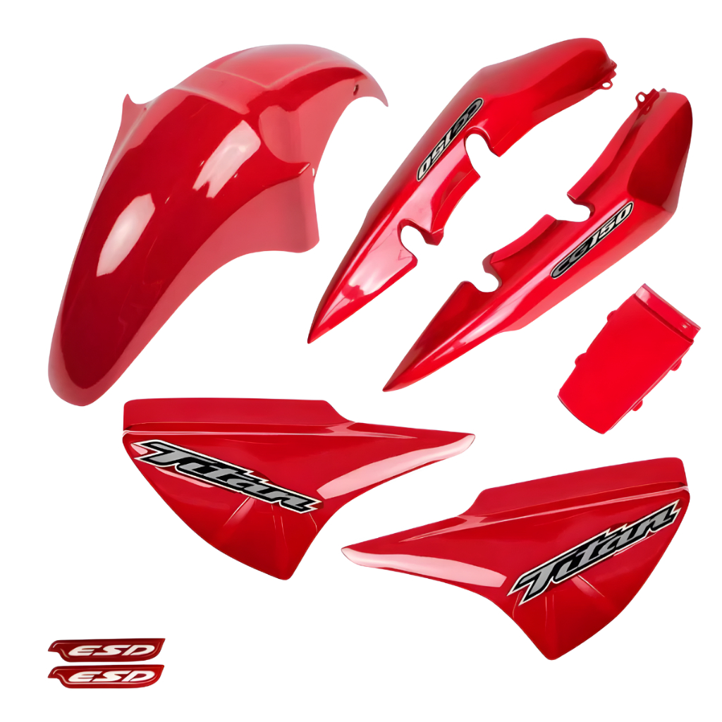 Kit Carenagem Titan 150 Vermelha 2004 2005 2006 2007 2008 + Adesivos Paralama + Rabeta + Tampa Lateral
