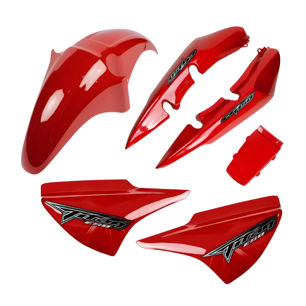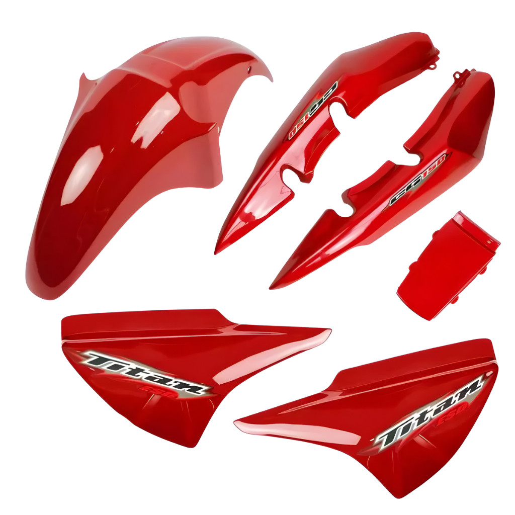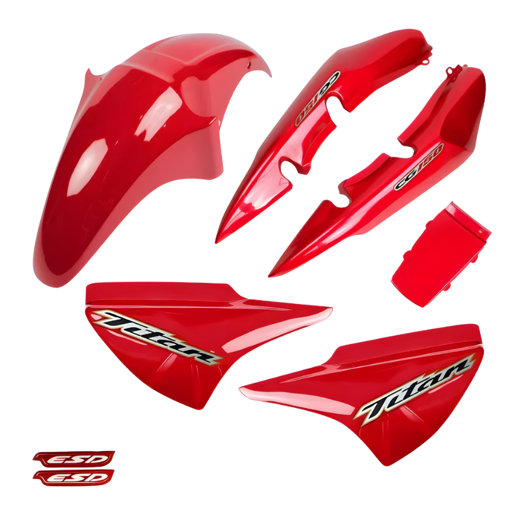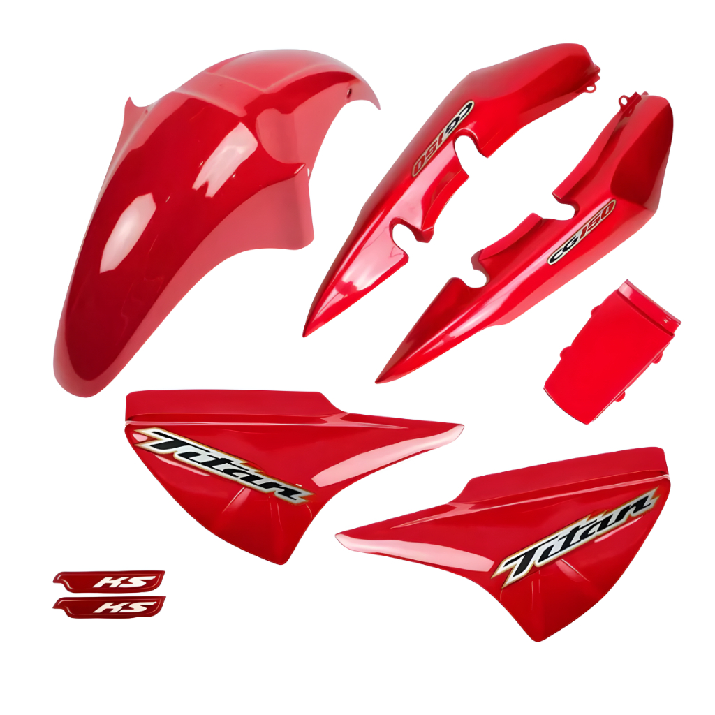 Kit Carenagem Titan 150 Vermelha 2004 2005 2006 2007 2008 + Adesivos Paralama + Rabeta + Tampa Lateral