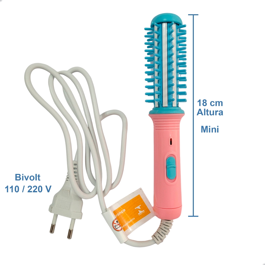 Mini Escova Portátil Prática Alisadora Modeladora Cachos Bivolt