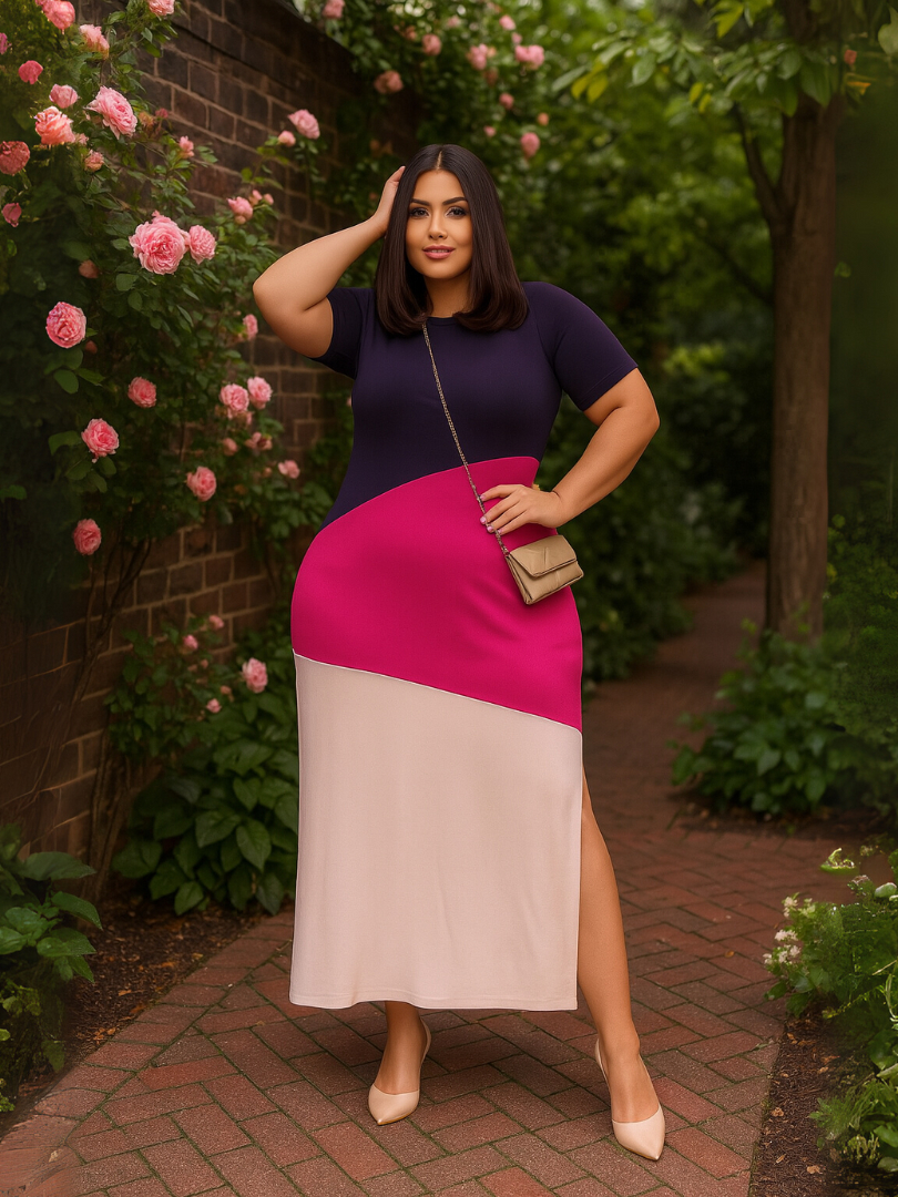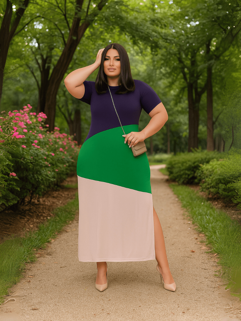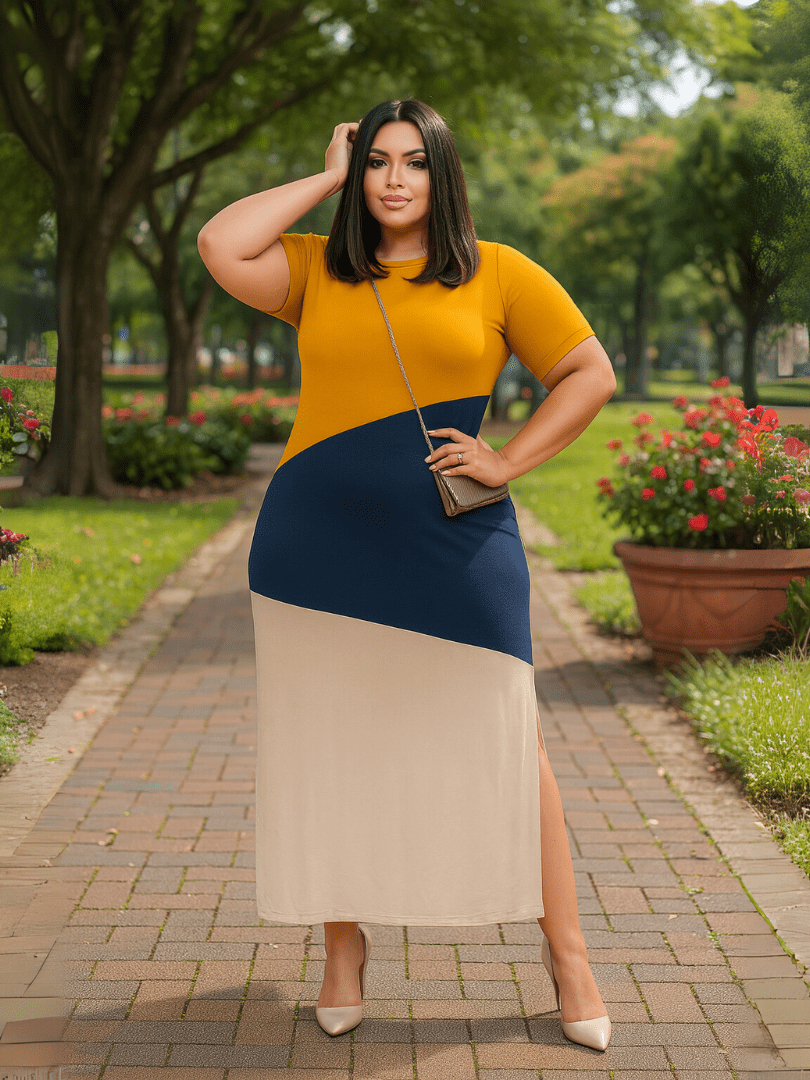 Vestido Longo Plus Size Midi Evangélico com Fenda e Manga – Tamanhos 46 ao 48