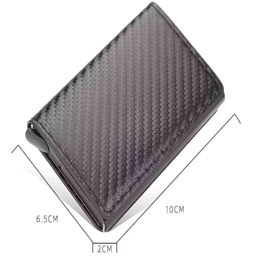 Carteira Ejetora Automática Slim Fibra De Carbono couro Anti Furto Proteção Cartões--Thay