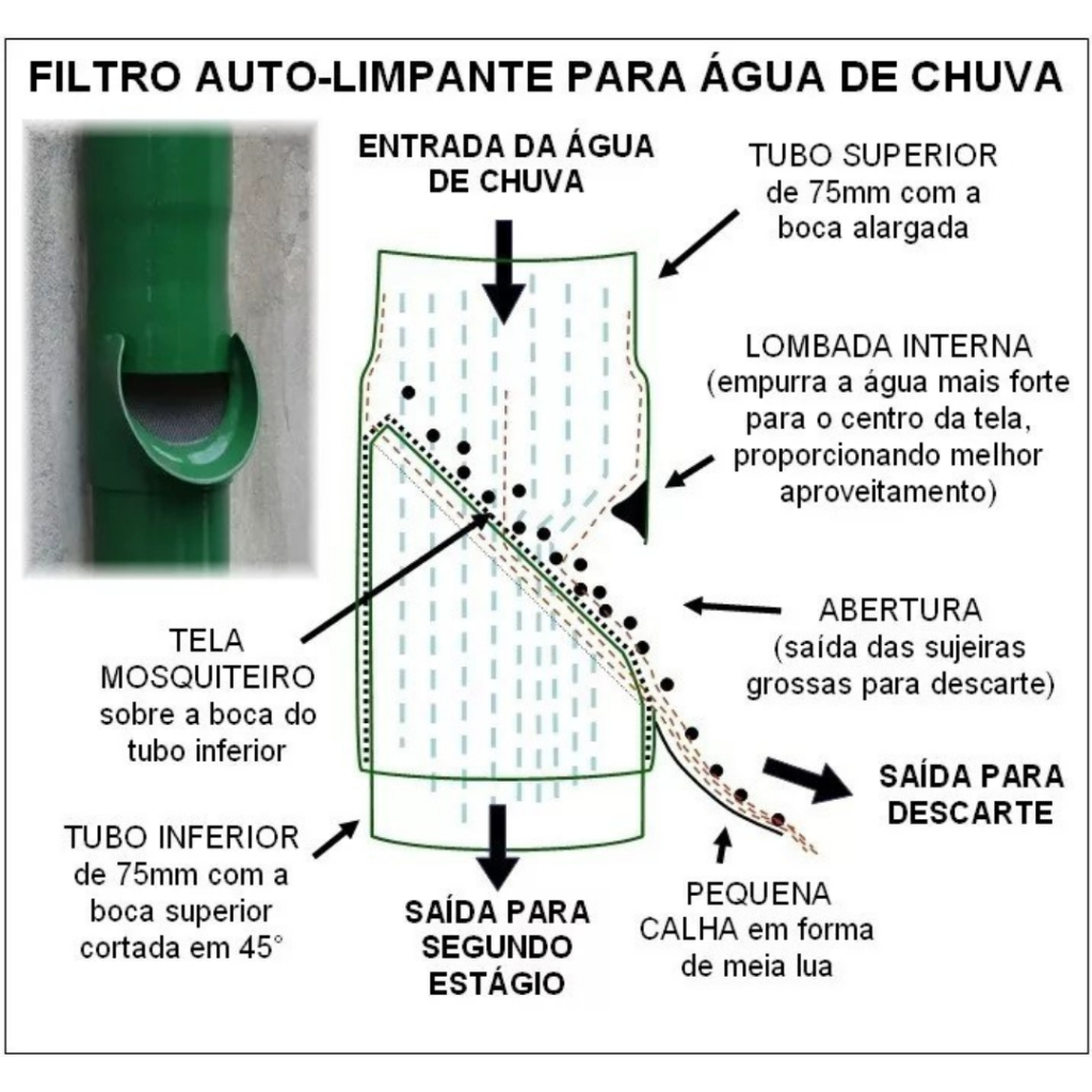 Filtro Captação De Agua De Chuva, para coleta de água em caixas dágua, bombonas, cisterna e outro tipos de reservatório.
