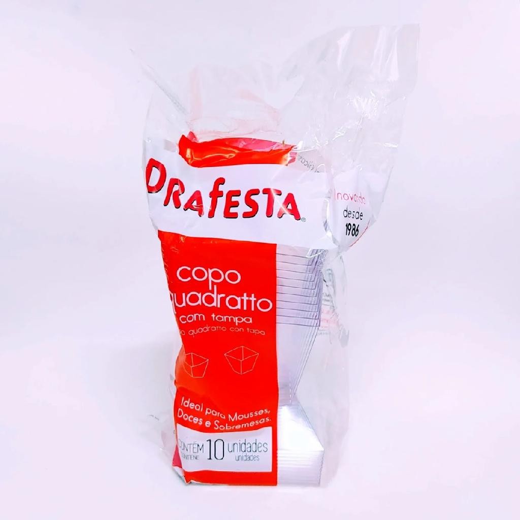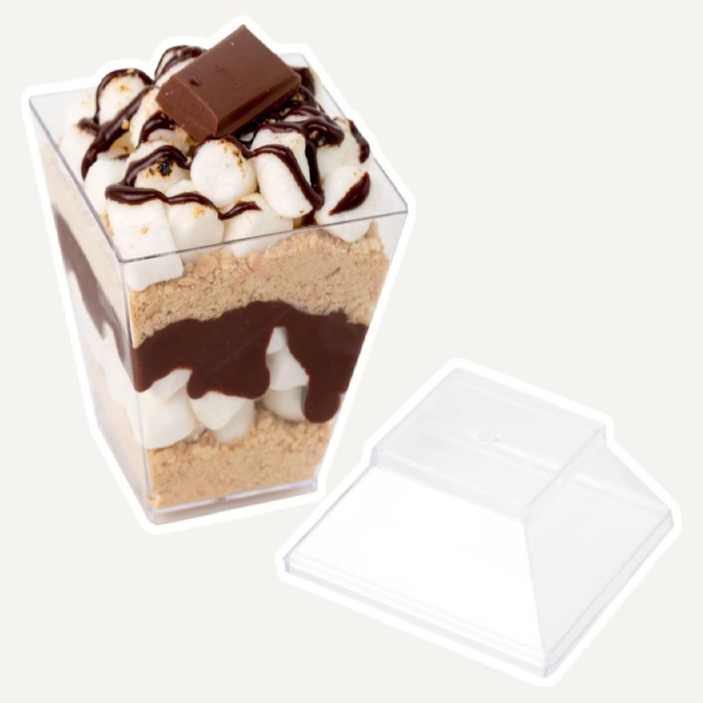 60Un Copo Quadratto 150ml Com Tampa Cristal Sobremesa Bolo no Pote Mousse Pudim Lanchonete Padaria