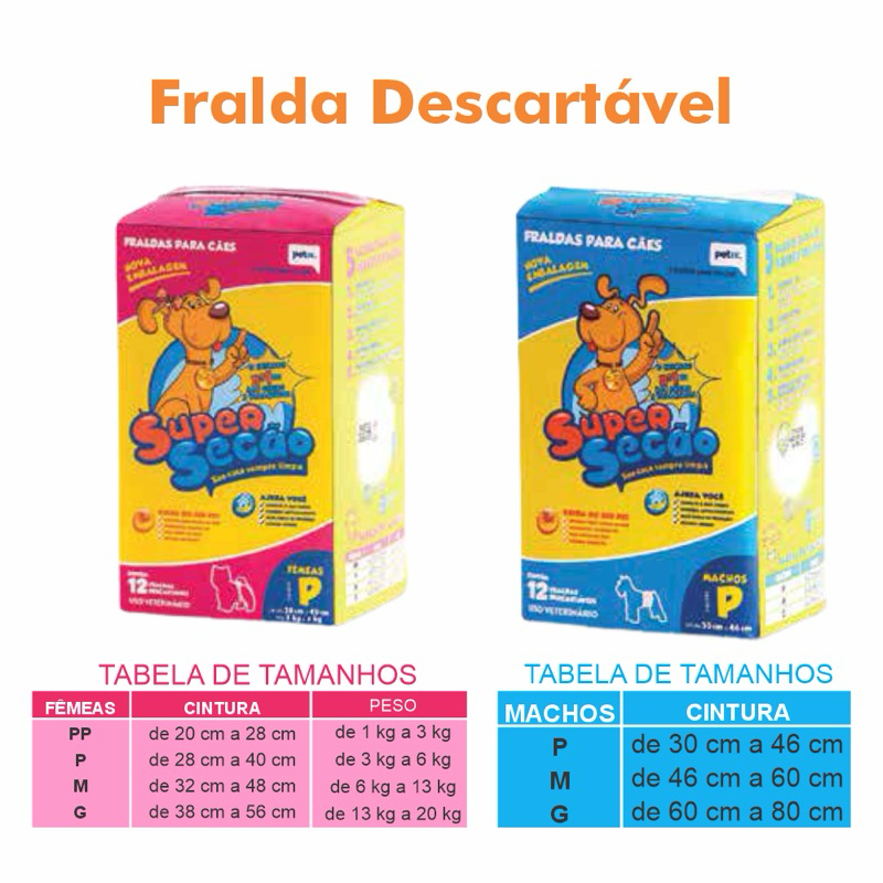 Fralda Absorvente Descartavel Para Macho e Fema Super Secão Com 12und