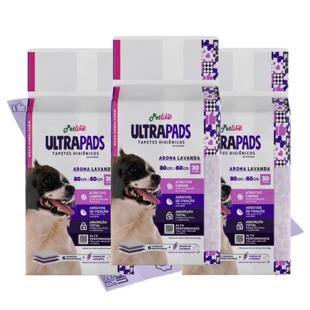 Tapete Higiênico Para Cães Ultra Pads Lavanda 80x60cm c/90un Pet Like