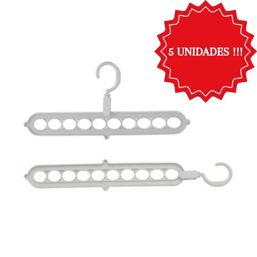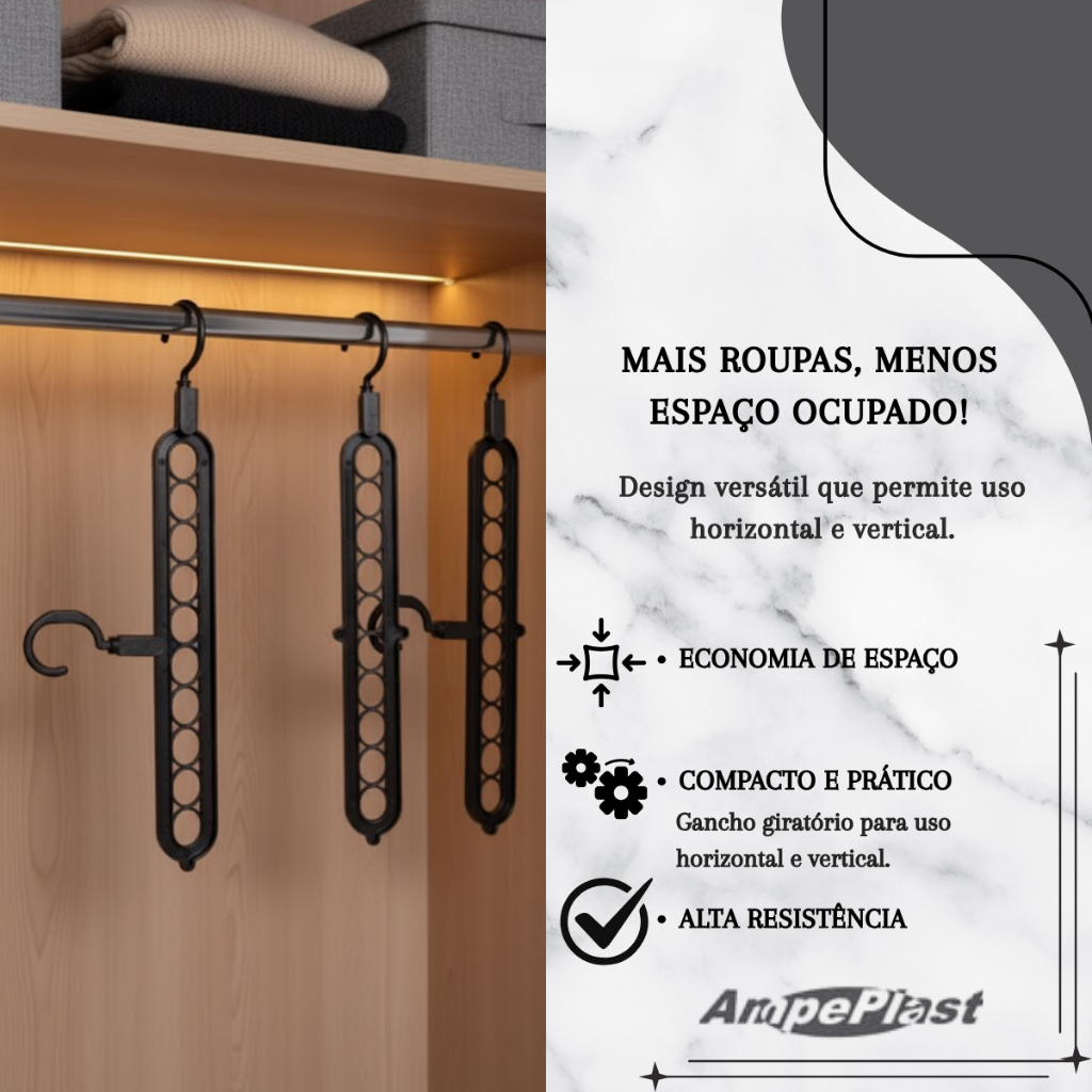 Kit 5 Cabides Mágicos Verticais AmpePlast 10 Furos Reforçados Organizador para Guarda-Roupas Armário
