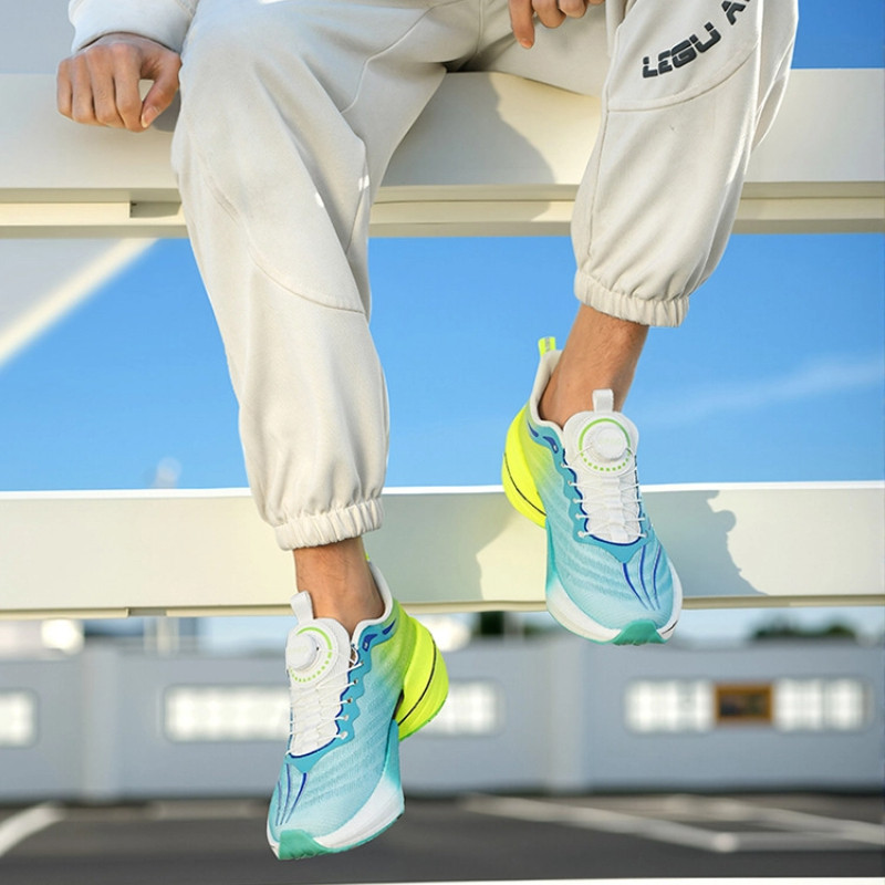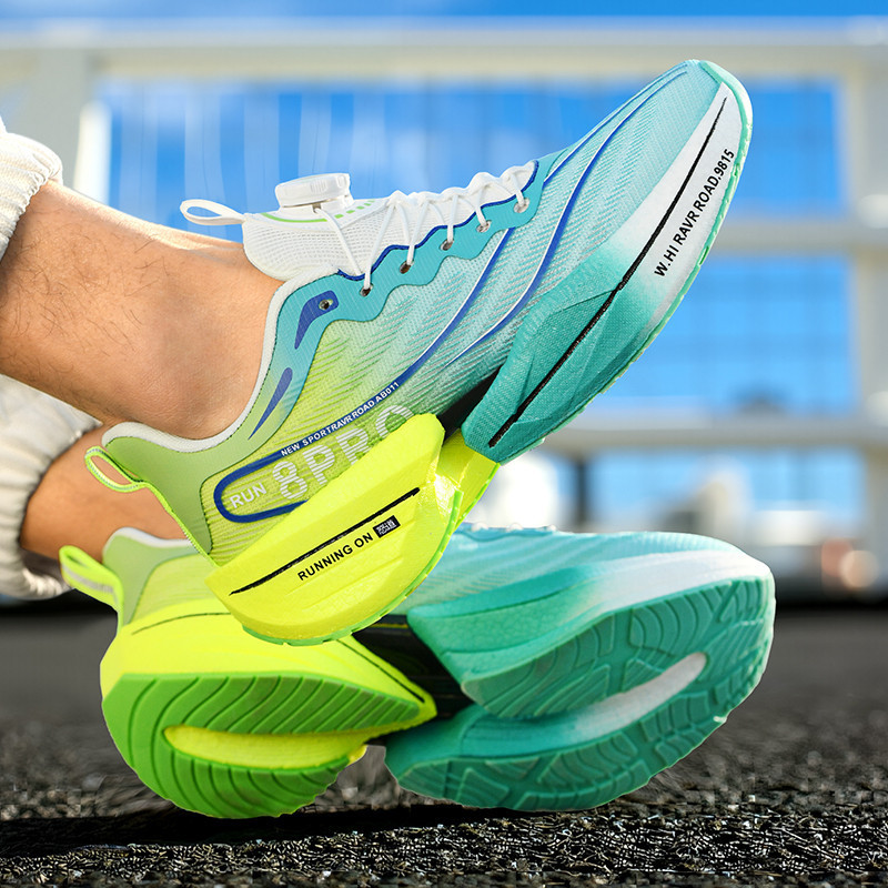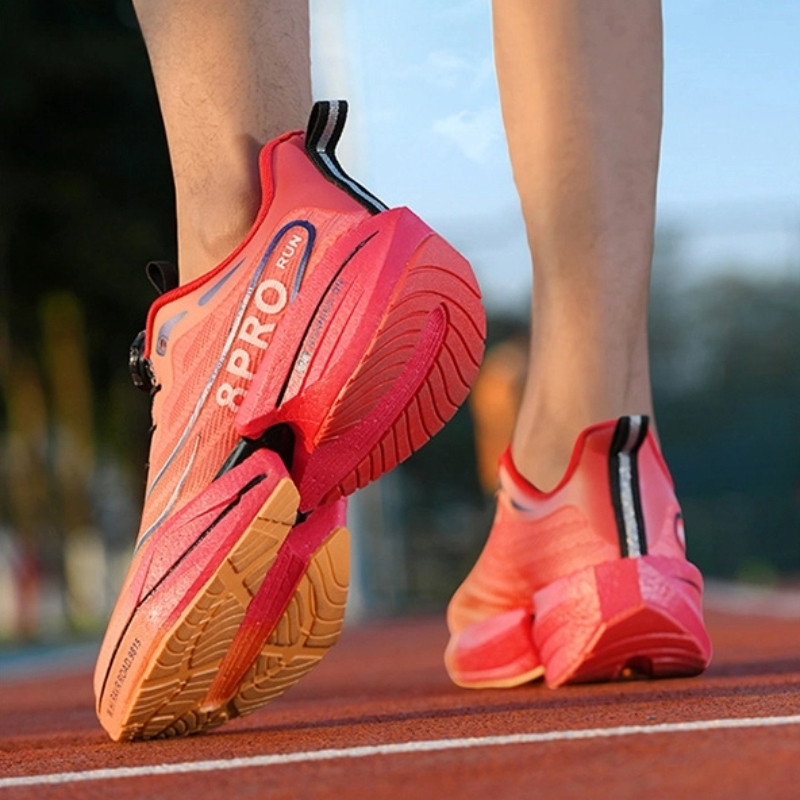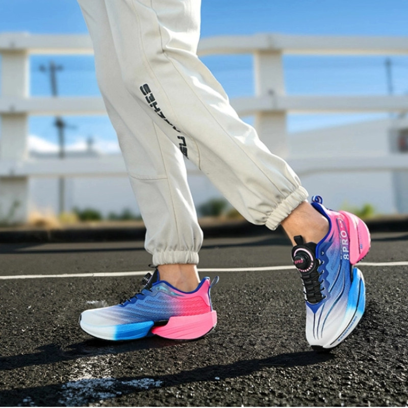 Nova Fivela Rotativa Placa De Carbono Sapatos Esportivos Para Casais Jovens Malha Respirável Corrida Tênis33-45