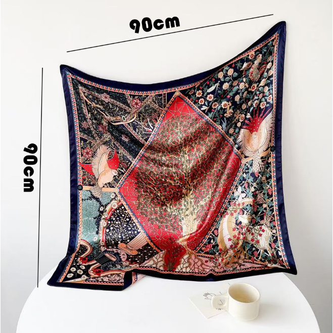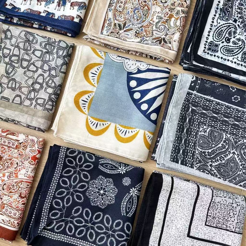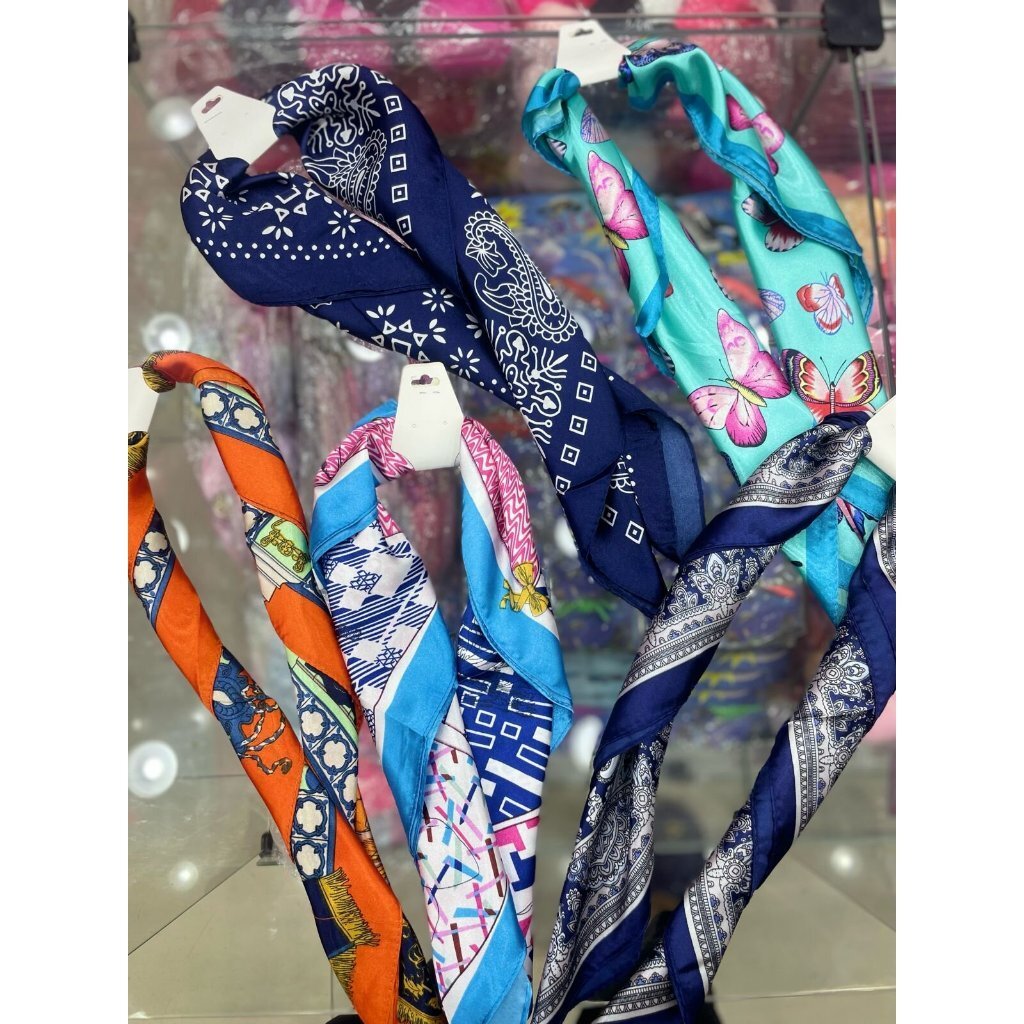 Lenço 50*50CM/90*90CM/ cetim / seda/ lenço /várias estampas(A cor e o estilo são entregues aleatoriamente)