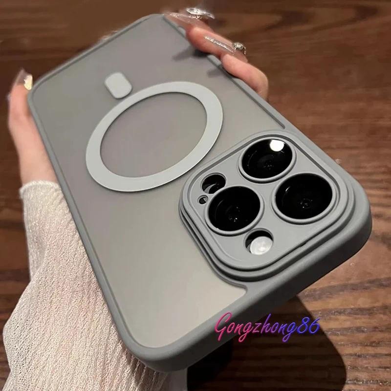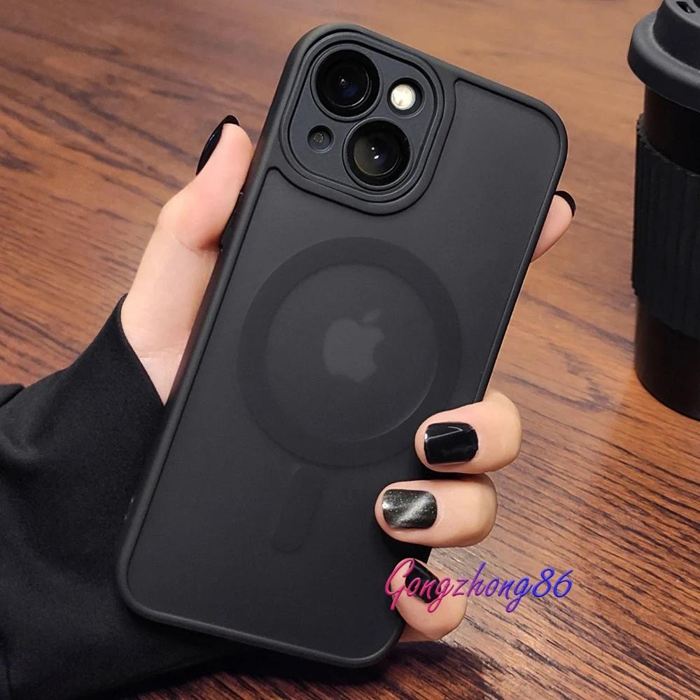 Capa De Telefone Magnética Translúcida Fosca Para IPhone 16 14 13 15 12 11 Pro Max Magsafe Armadura De Carga Sem Fio À P